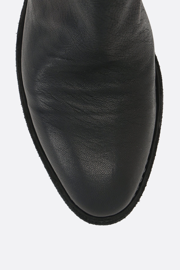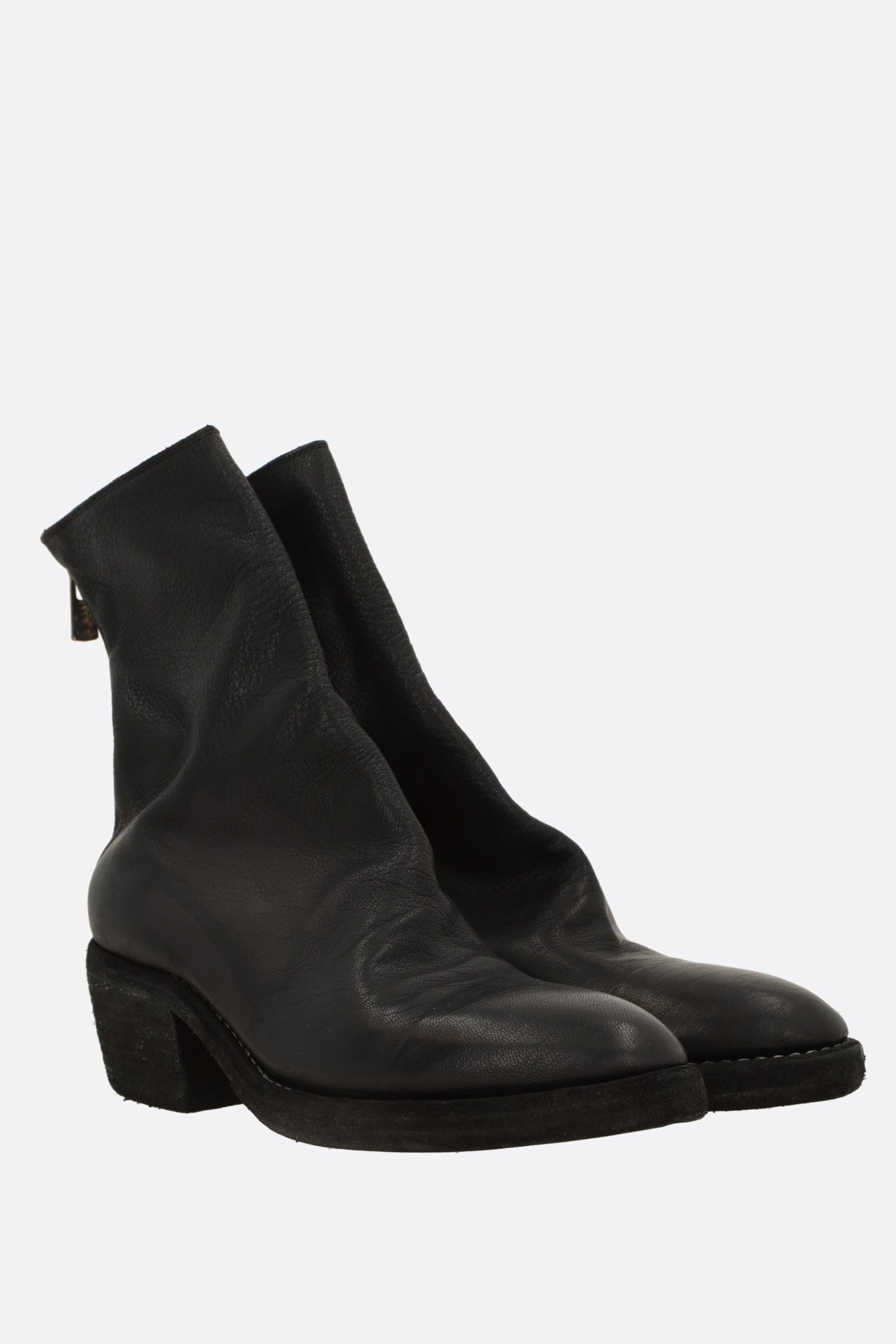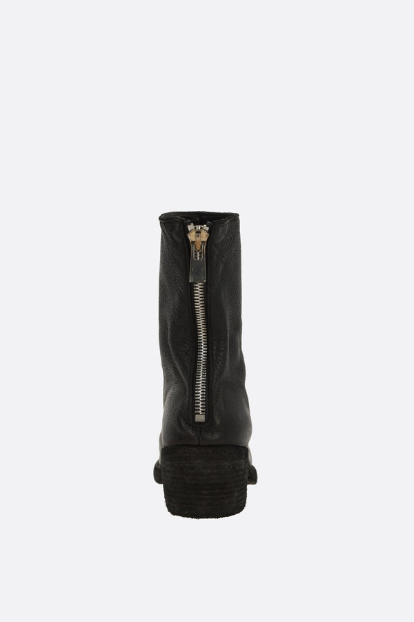 Guidi western ankle boots crafted from slightly hammered black leather. Features a rear zip closure, almond-shaped toe, leather lining, and leather sole.