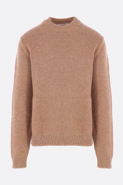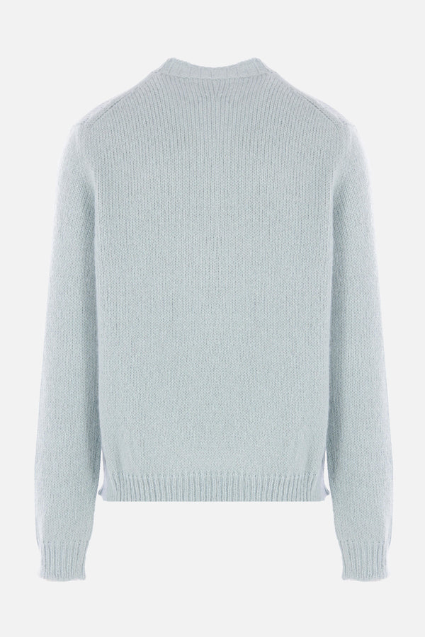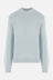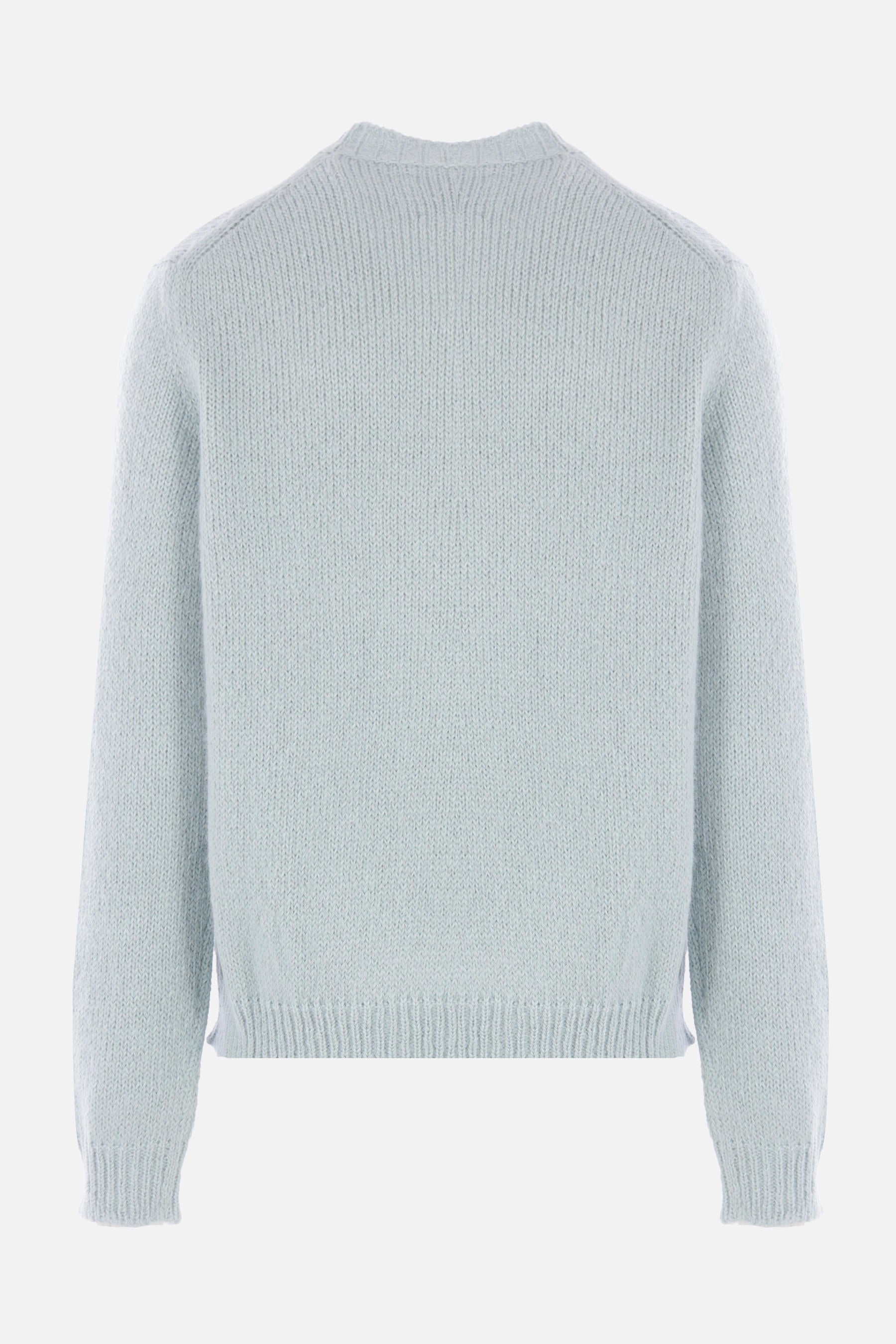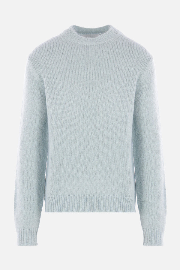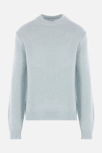 Jil Sander sweater crafted from light blue alpaca and wool-blend knit. Featuring a crew neckline, long sleeves, ribbed trims, and a straight hem.
