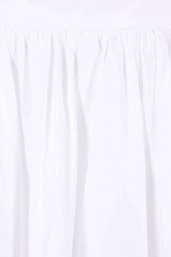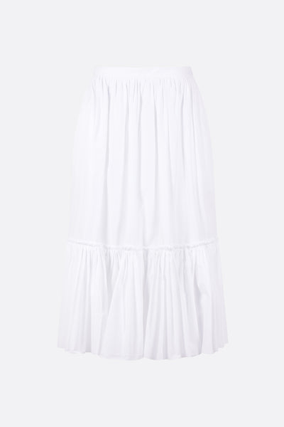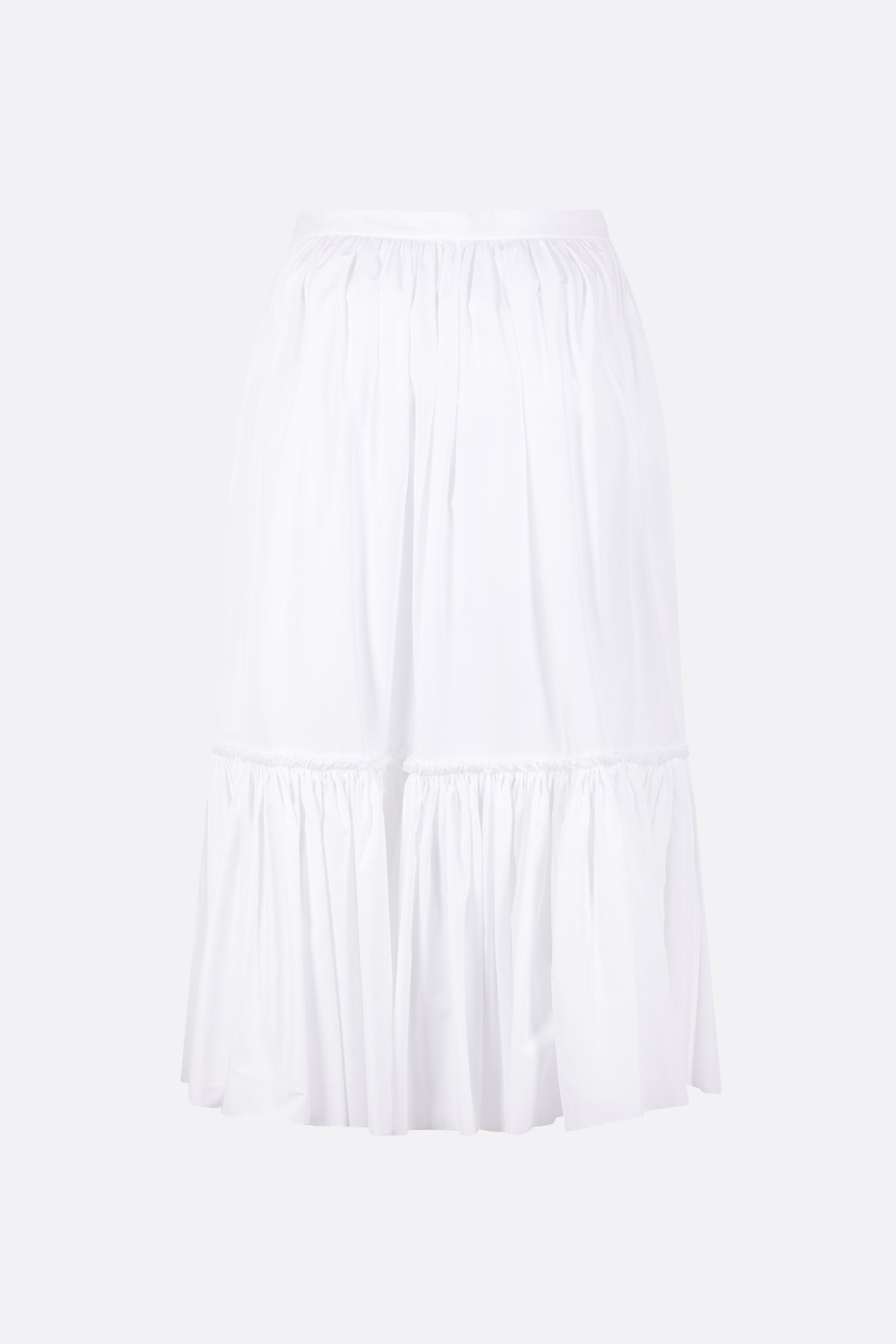 Jil Sander midi skirt crafted in white cotton poplin. It features a side invisible zip closure, side pockets, a hem ruffle, and a lined interior.