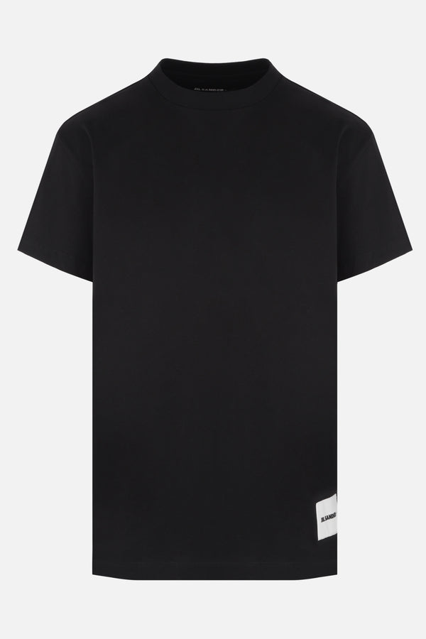 Pack of 3 t-shirts by Jil Sander, crafted from black organic cotton jersey. Featuring a crew neckline, short sleeves, and a straight hem. The design is completed with the signature logo label at the hem.