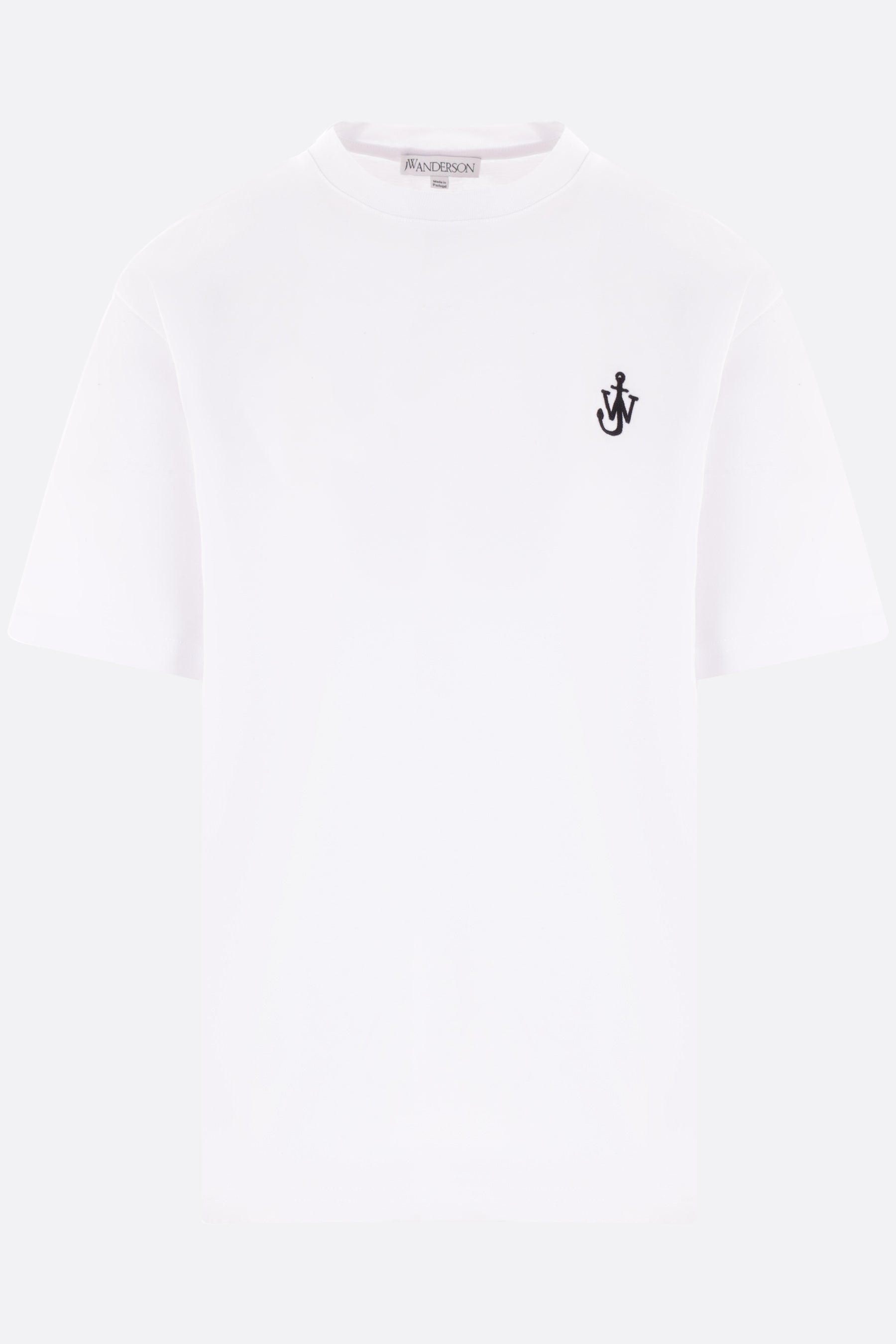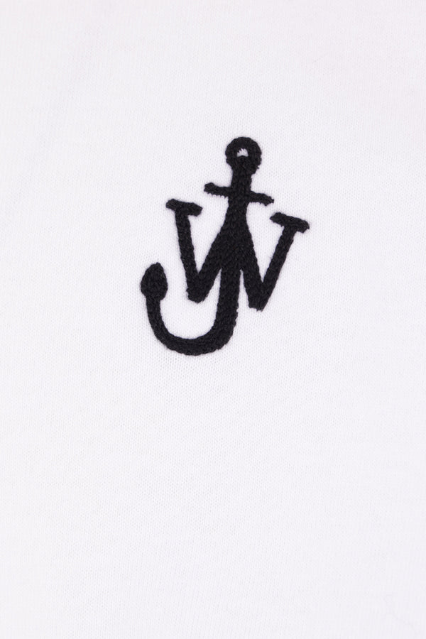 JW Anderson t-shirt crafted in white cotton jersey with a contrasting embroidered Anchor JWA logo on the chest. Featuring a crew neckline, short sleeves, and a straight hem.