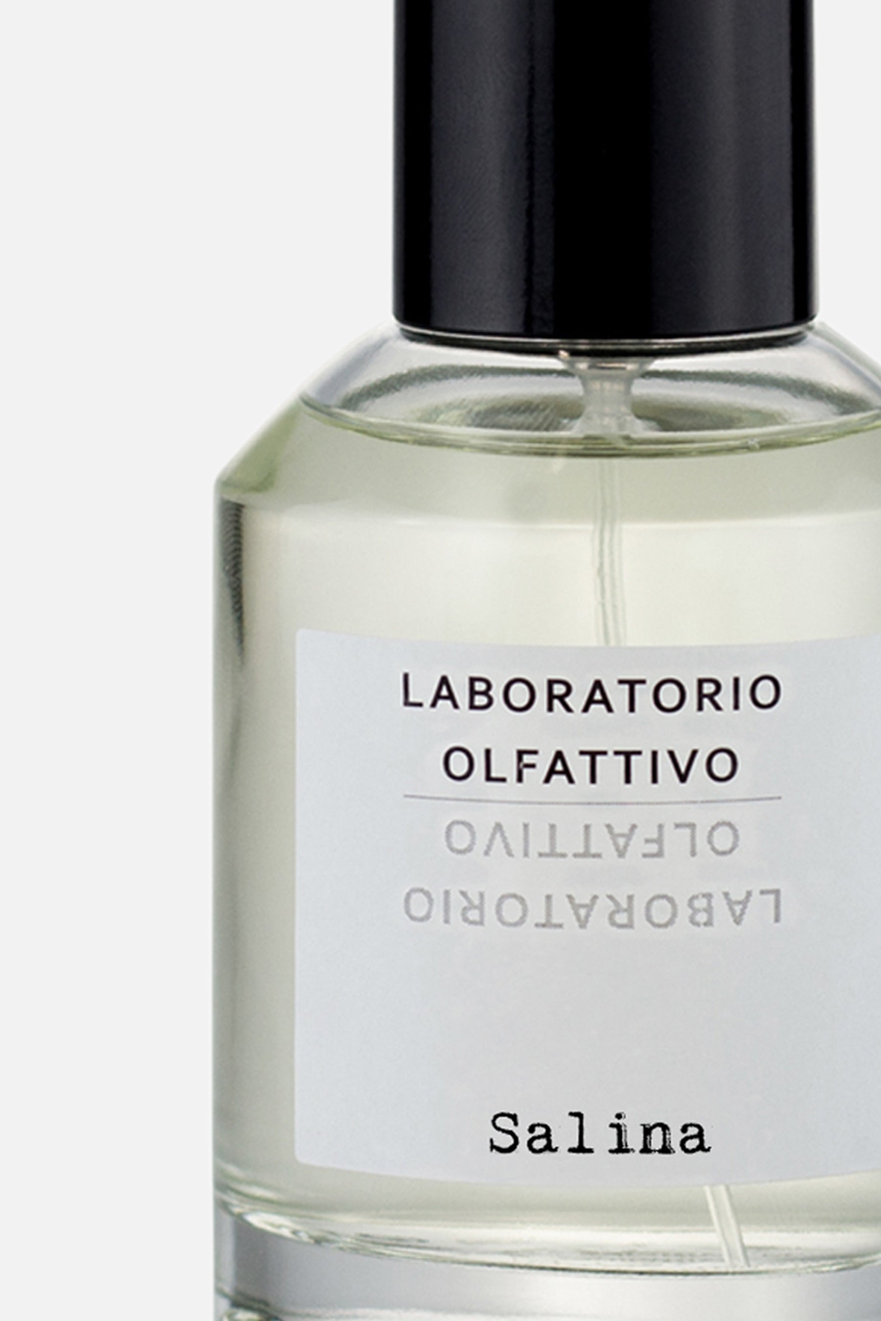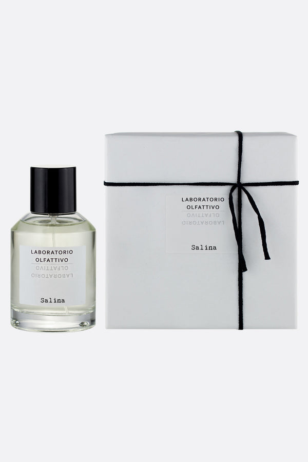 Laboratorio Olfattivo's Eau de parfum 100 ml. Head notes: lemon peel, marine Salt, pine needles; heart notes: hot sand, myrtle, wormwood, marine spurts, lavender; base notes: vanilla, white musk, cedar.