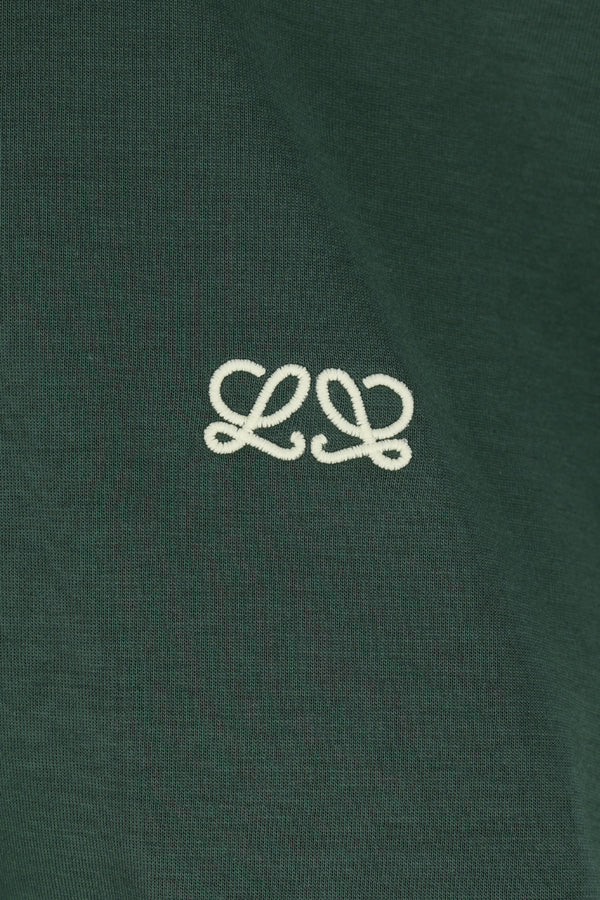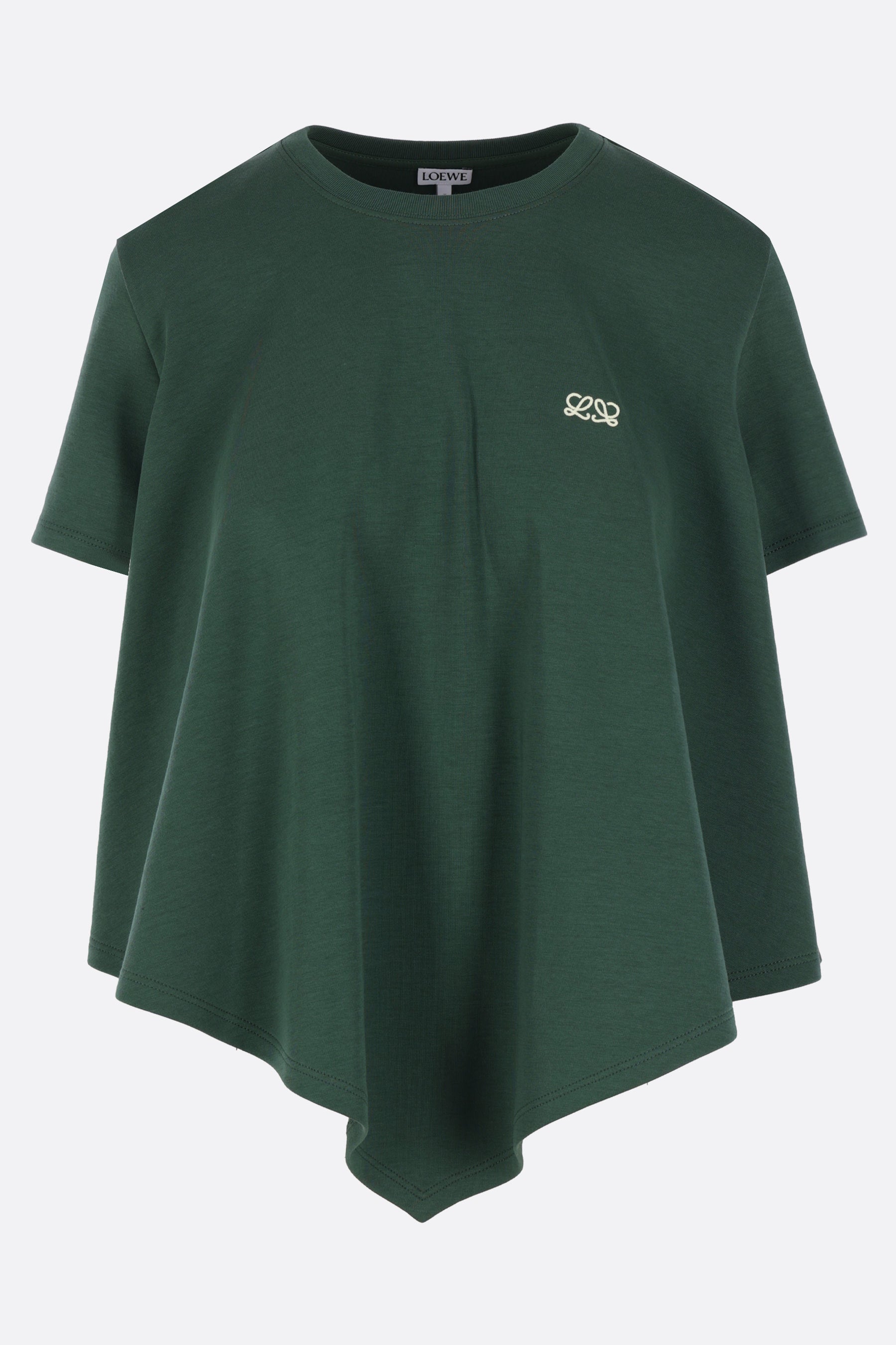 Loewe t-shirt crafted in dark green cotton-blend jersey with an Anagram embroidery on the chest. Featuring a crew neckline, short sleeves, and a wide cape-style hem.