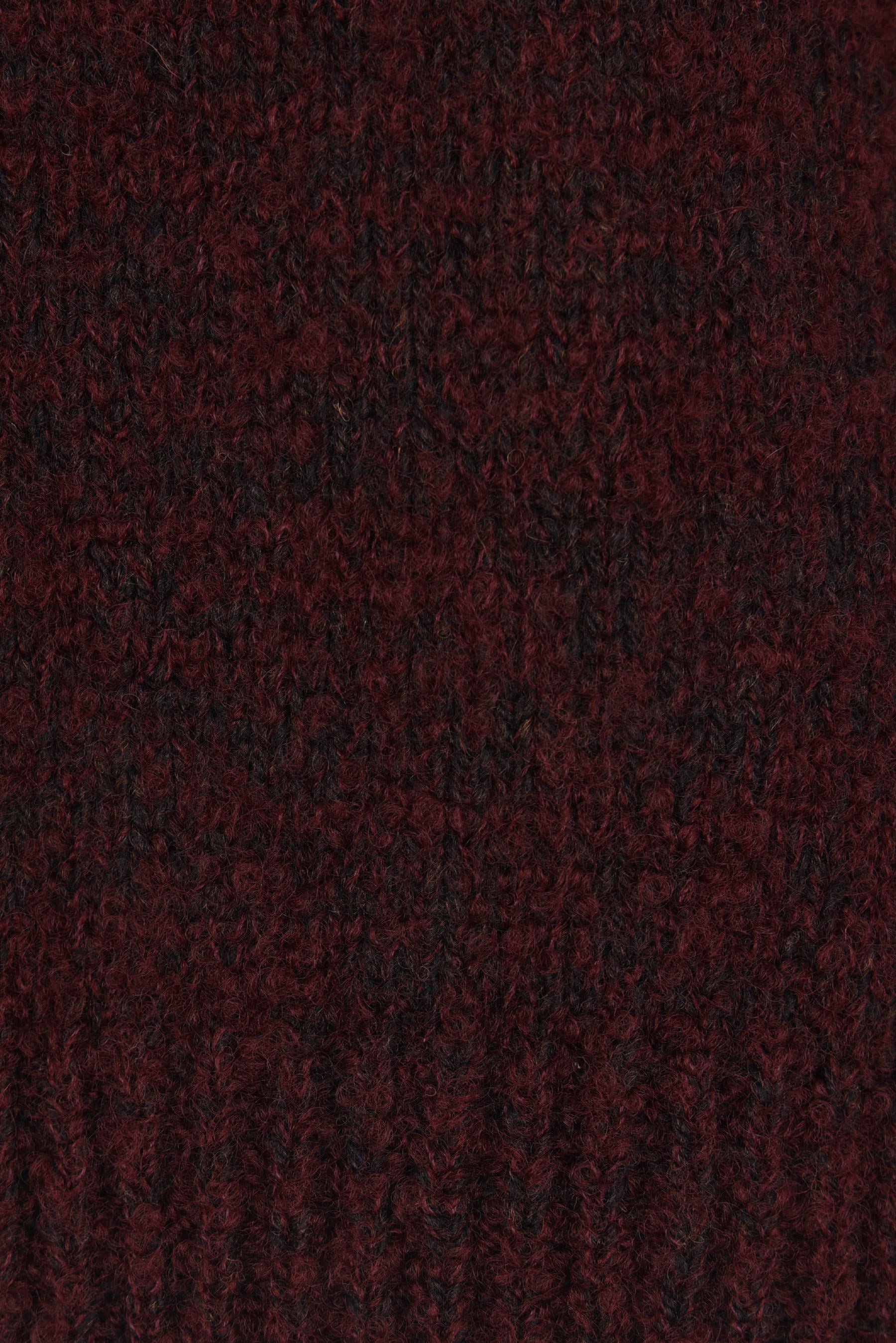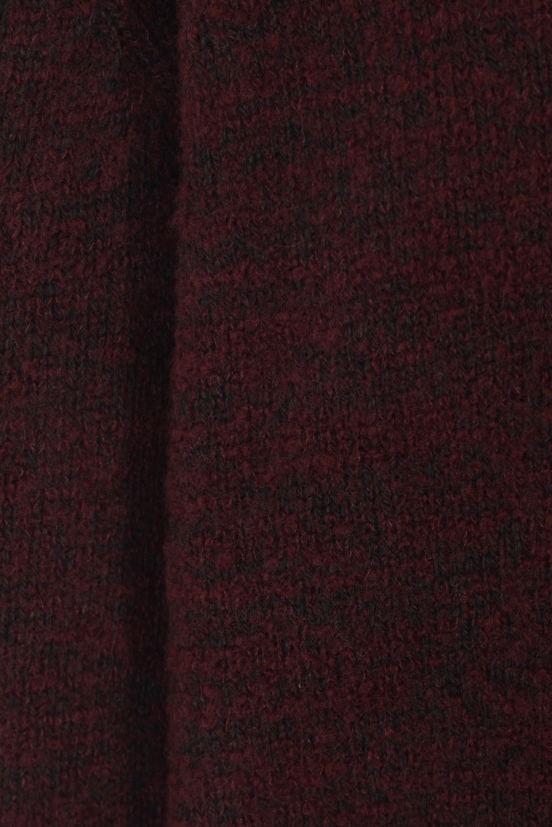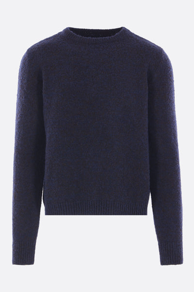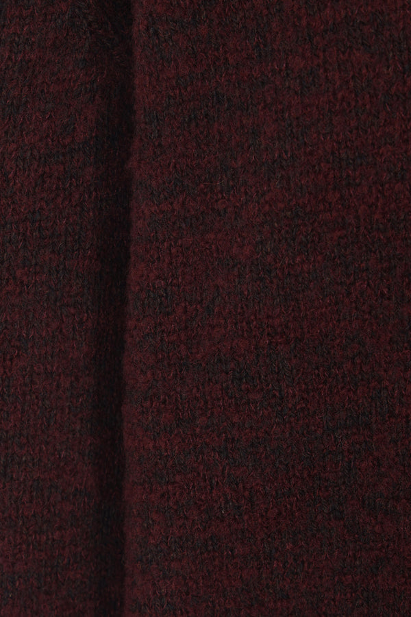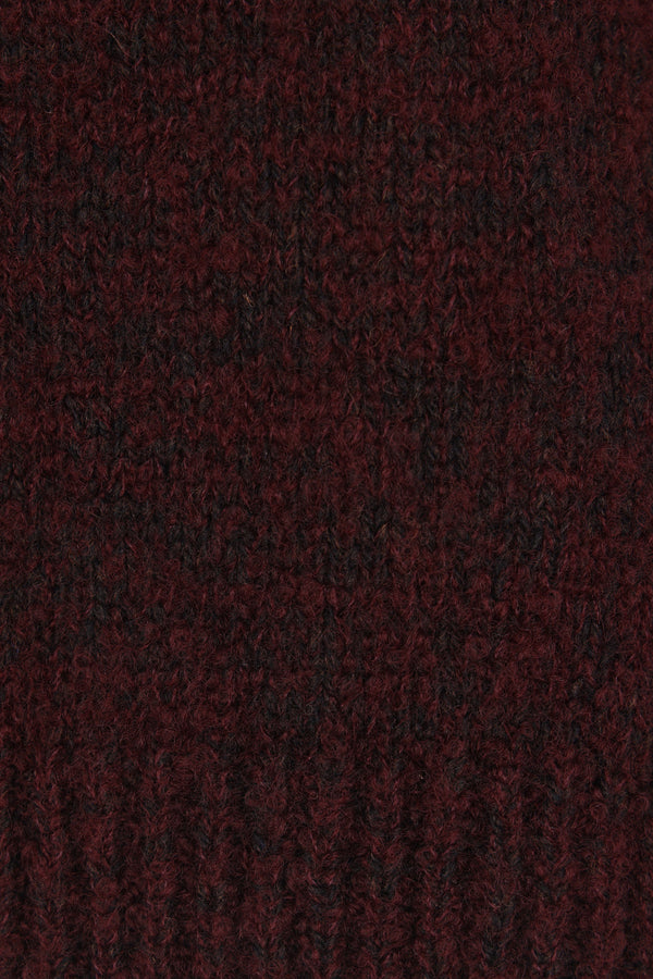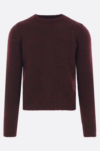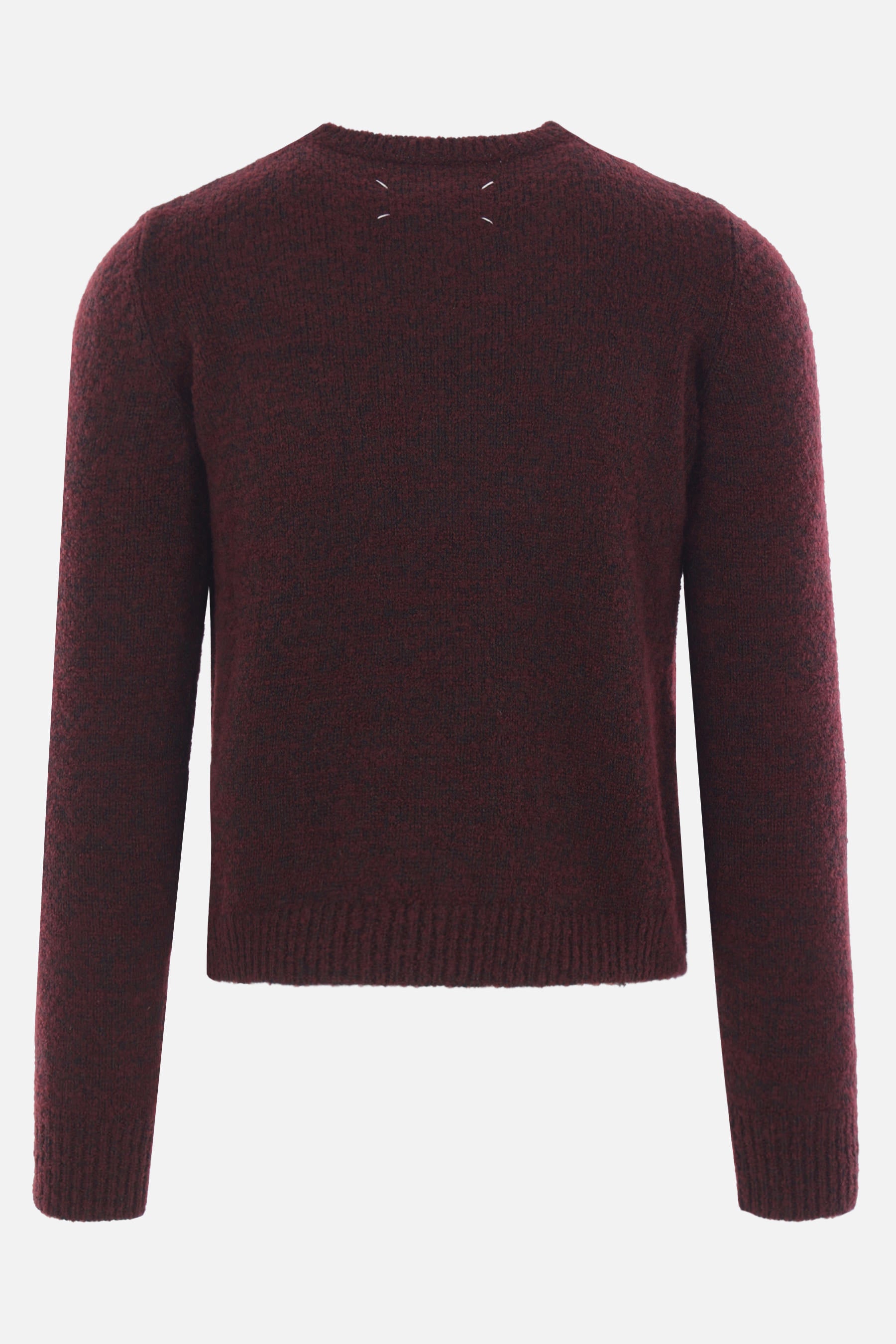 Maison Margiela sweater made of burgundy wool-blend knit with a brushed finish and gradient dye effect. Features a crew neckline, long sleeves, and ribbed trims. The design is completed by the Maison's signature four stitches on the back.