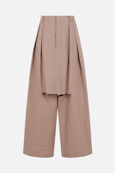 Niccolò Pasqualetti skirt trousers crafted from white linen and cotton with a deconstructed frayed-edge design. Featuring a hook, button, and zip closure, belt loops, multiple pockets, double pleats, a center crease, and an unlined interior.