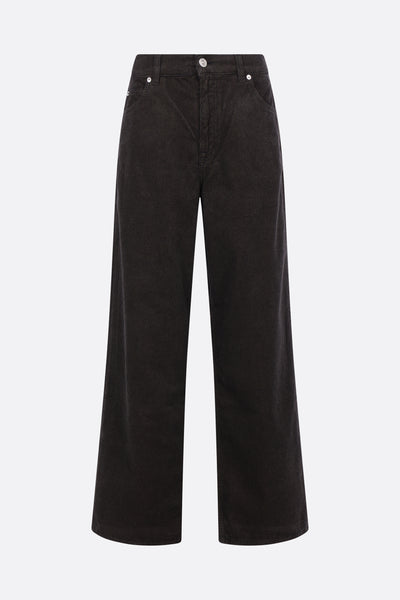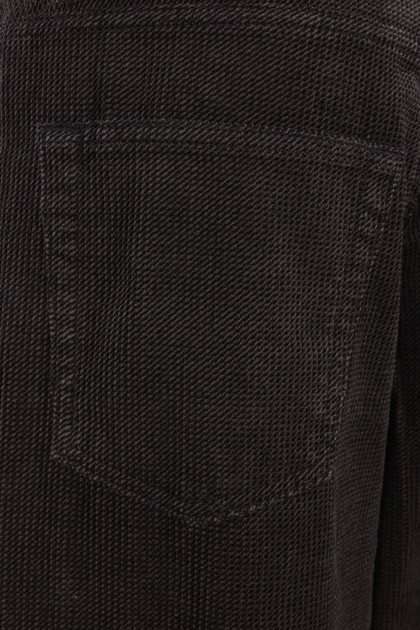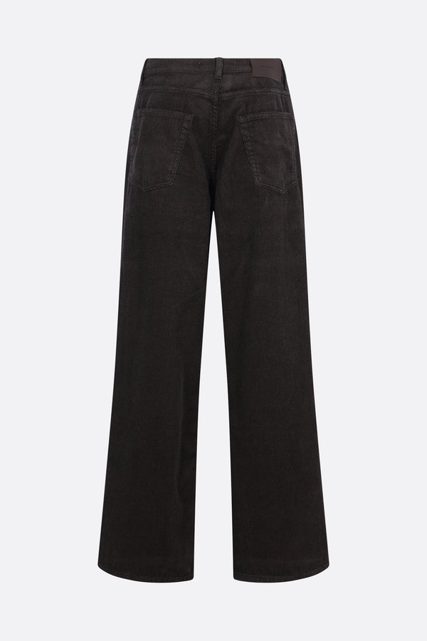 Our Legacy loose-fit trousers crafted from dark brown cord twill. Featuring a front metal button/zip closure, belt loops, five classic pockets, and a rubber logo patch on the back.