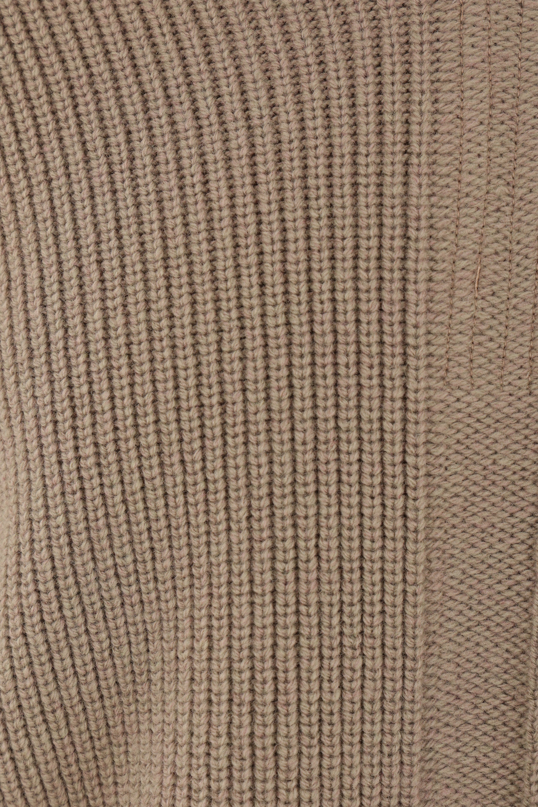 Rick Owens' pullover crafted in dust grey ribbed-knit wool. It features high neck with back V-neckline, long sleeves and straight hem with small side slits.