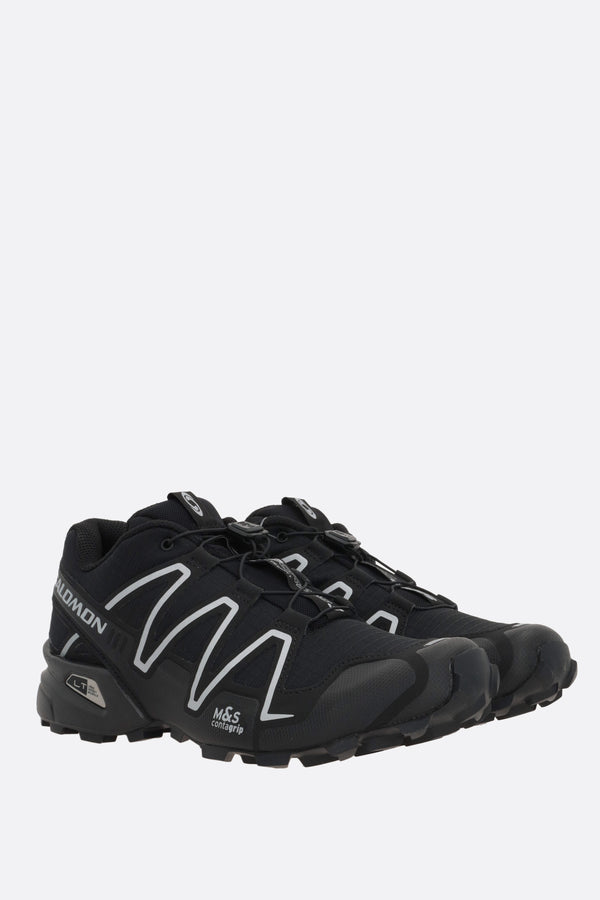 Salomon S/Lab low-top sneakers crafted in black mesh with tone-on-tone rubber details. Featuring drawstring closure, a round-toe silhouette, fabric lining and textured rubber sole with Contagrip technology. The design is completed by Speedcross 3 label on tongue and the iconic logo printed on side.