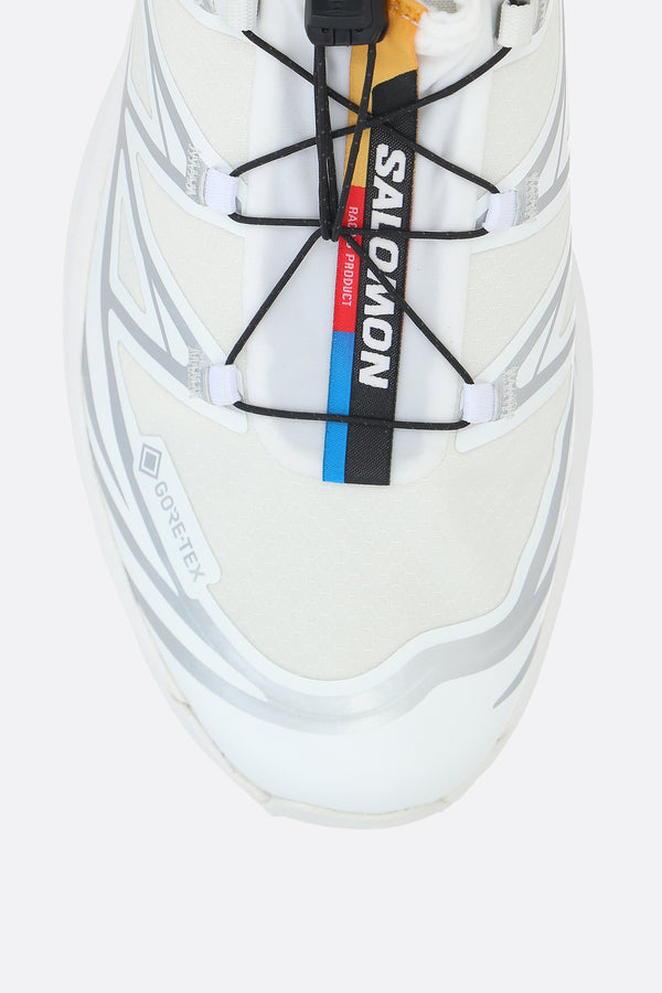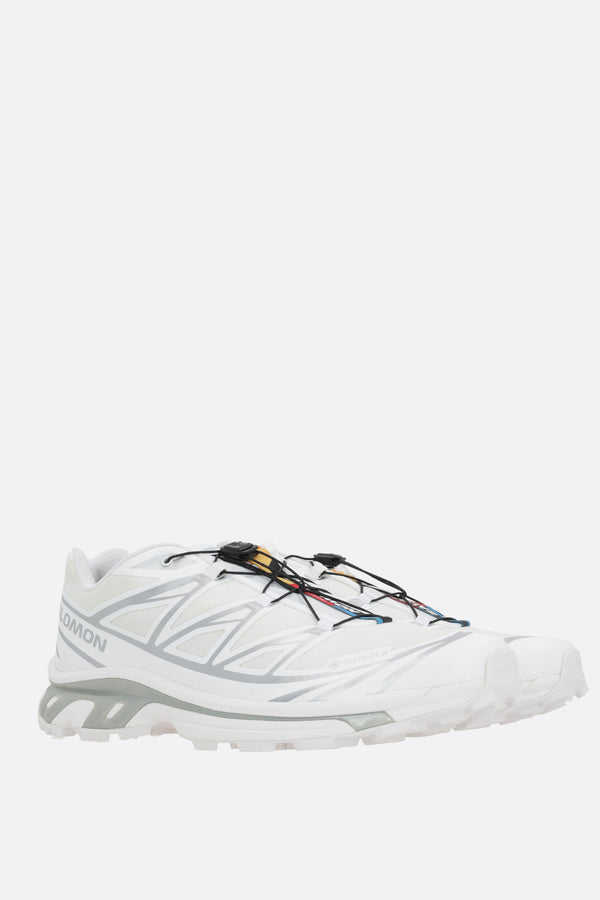 Salomon S/Lab low-top sneakers crafted in white GORE-TEX with contrasting heat-bonded details. Featuring drawstring closure, a round-toe silhouette, fabric lining and textured rubber sole with Contagrip technology. The design is completed by logo label on tongue and the iconic logo printed on side.