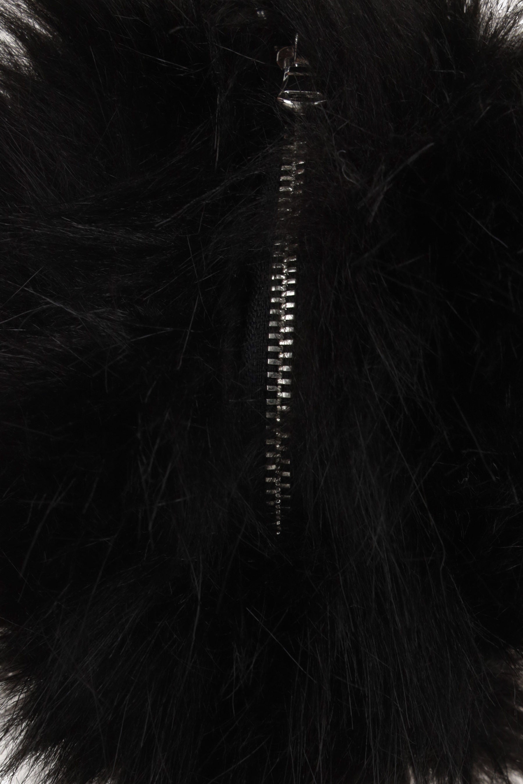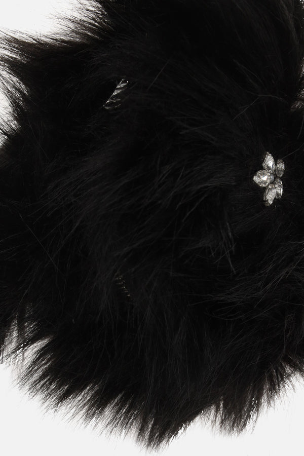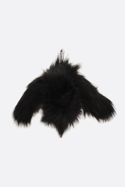 Simone Rocha hare head-shaped bag charm made of black faux fur with crystal embroidery on the sides. Featuring silver-tone hardware, front zip pocket, and a branded lobster clasp.