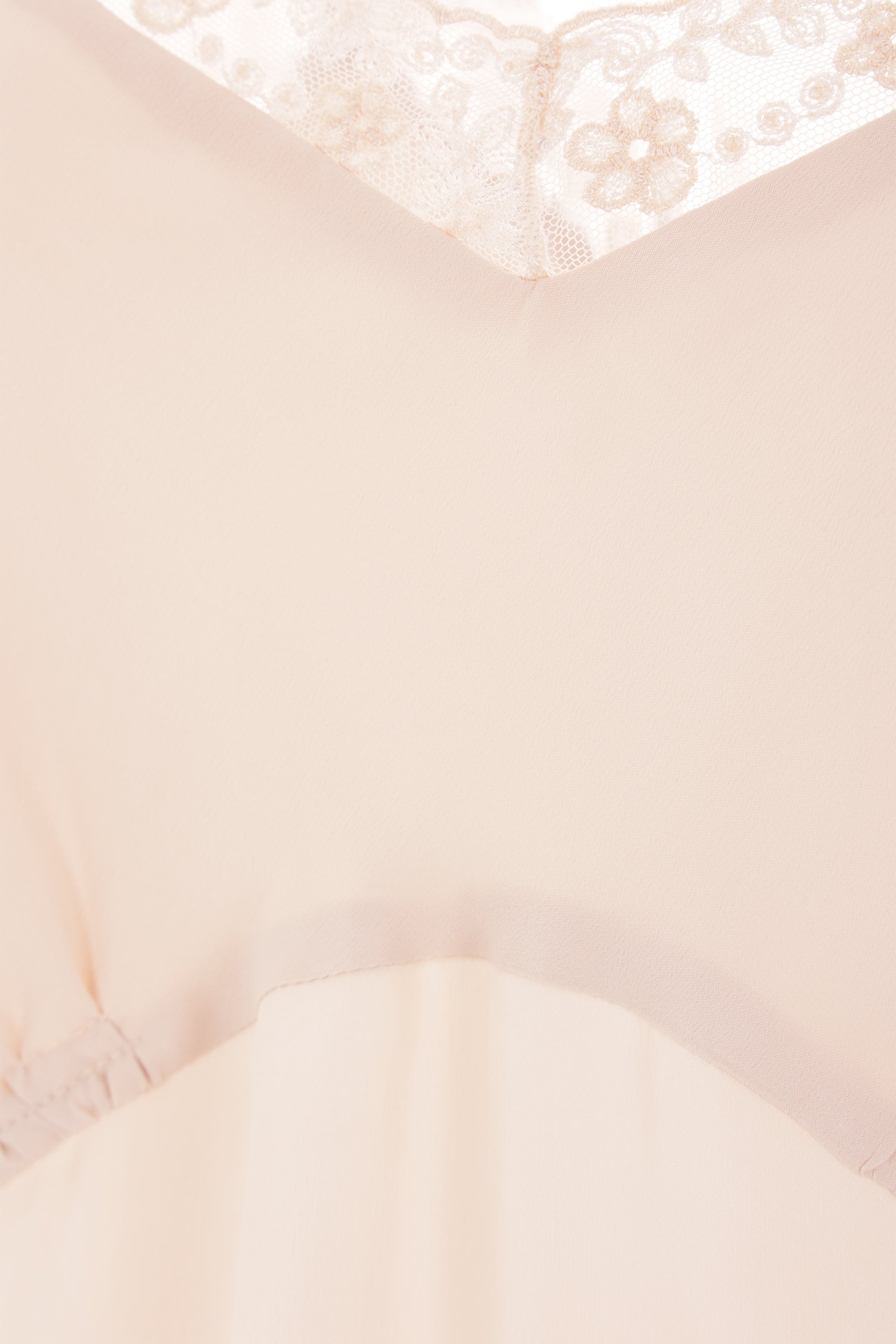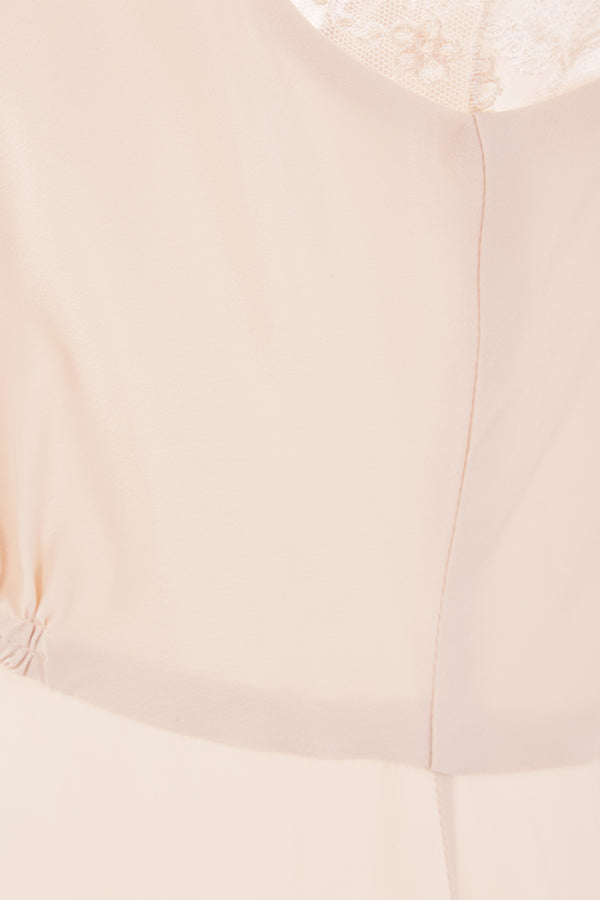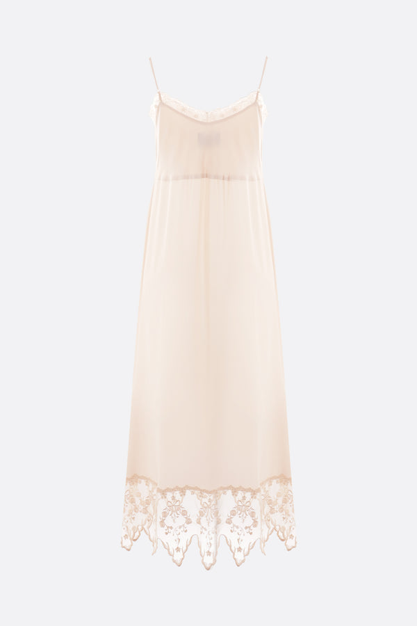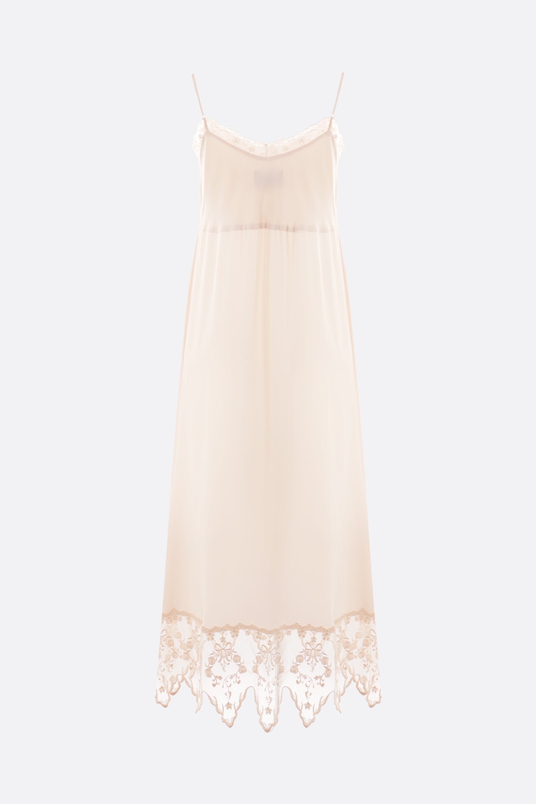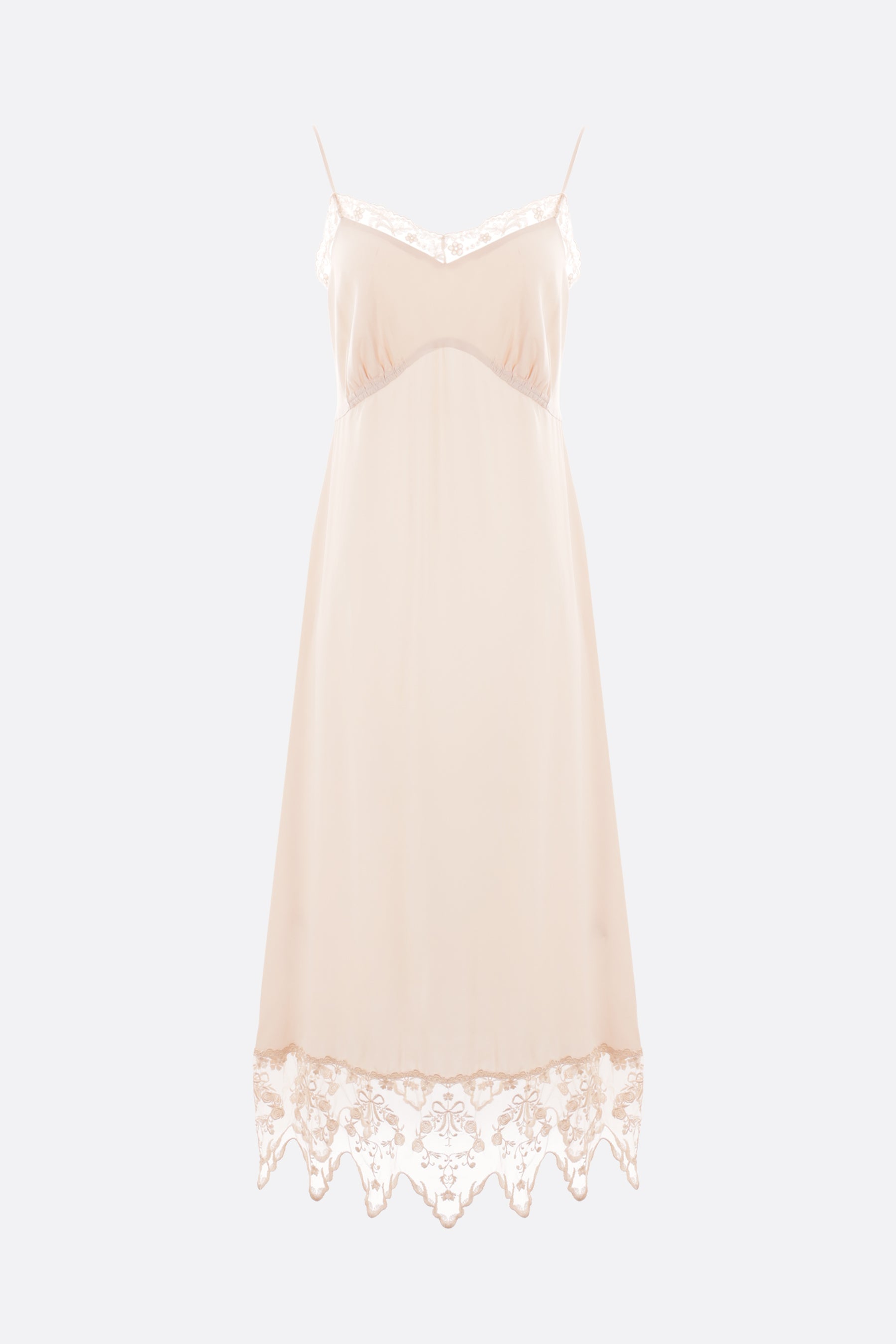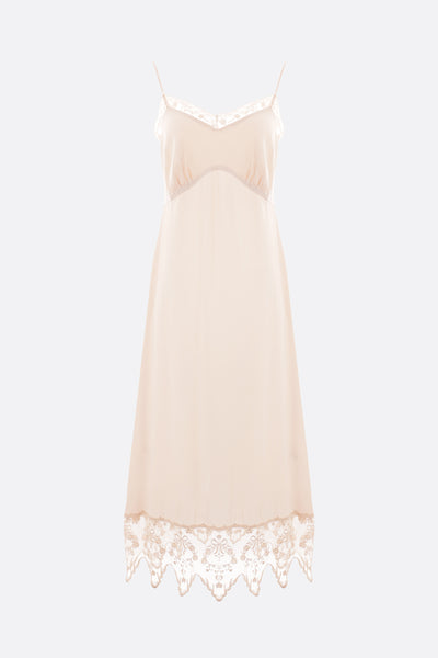 Simone Rocha slip dress made of nude crêpe de chine with floral lace trims. Featuring adjustable thin straps and a sweetheart neckline.