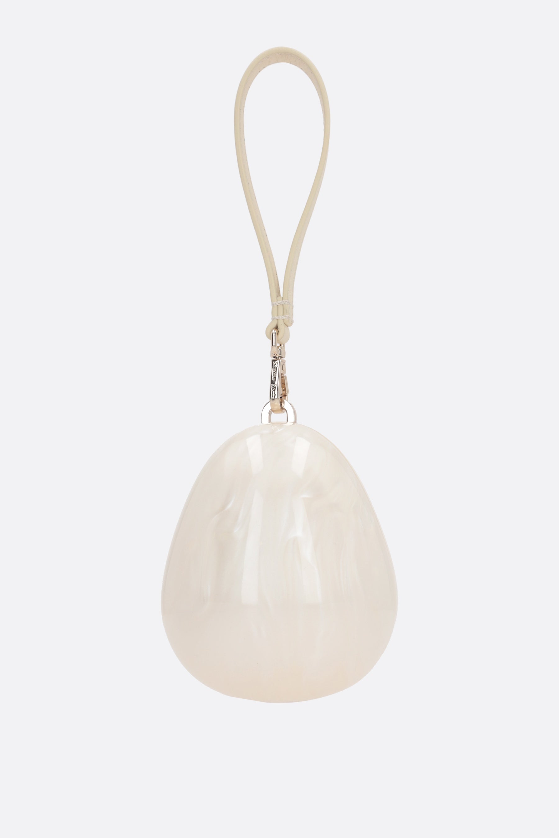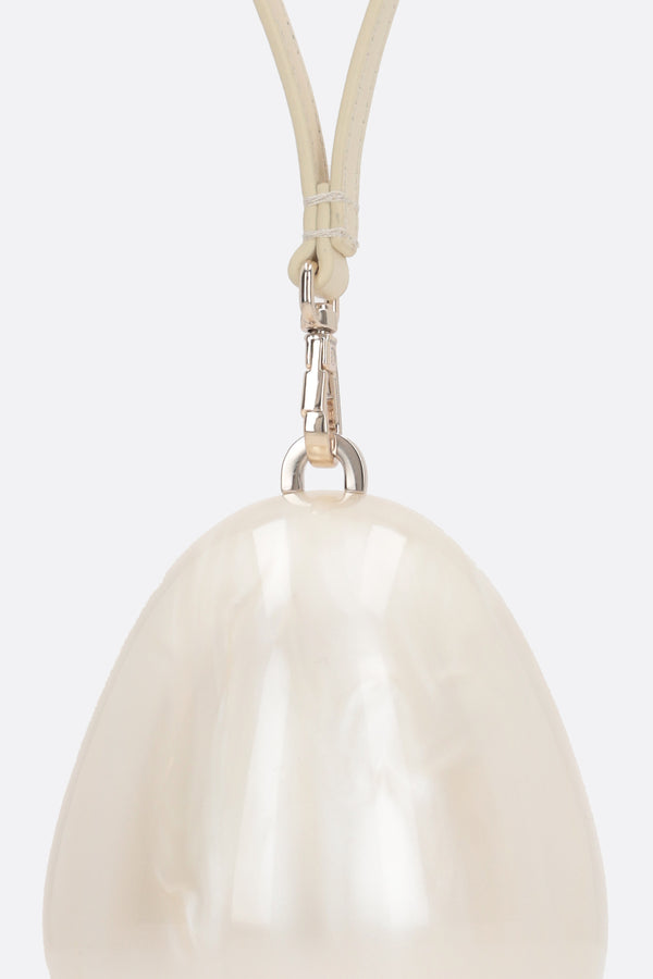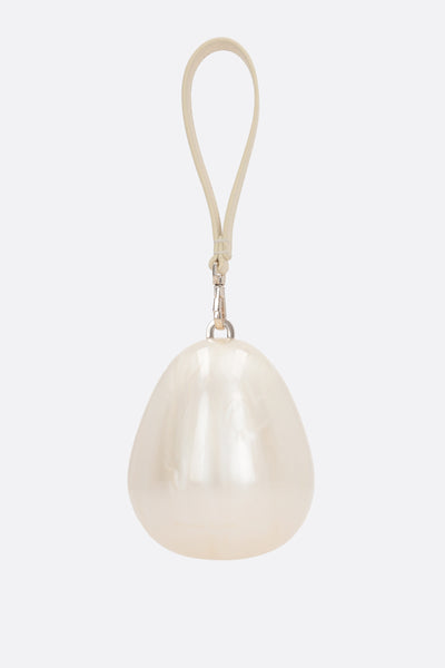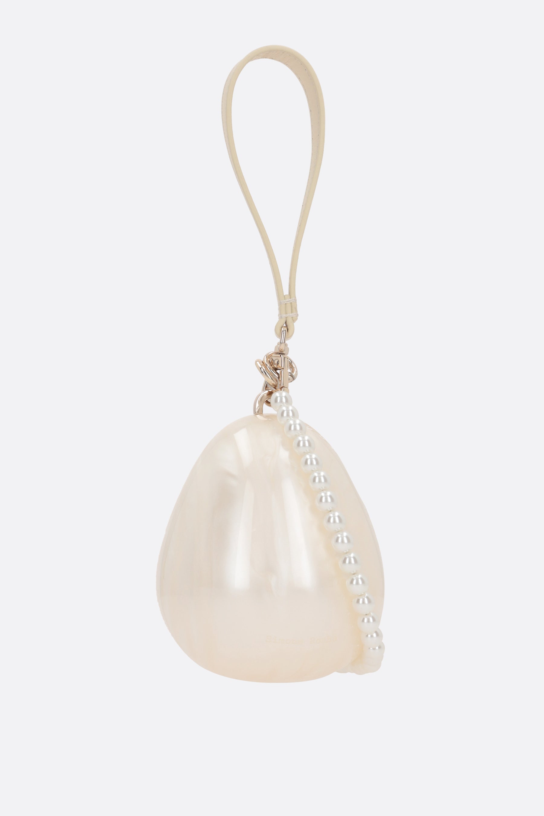Simone Rocha handbag crafted in white pearlized-effect Perspex. It features platinum-tone hardware, magnetic closure, removable leather wrist strap and removable chunky pearl strap. Beige grosgrain-lined interior. The design is completed by the unmistakable logo engraved on front.