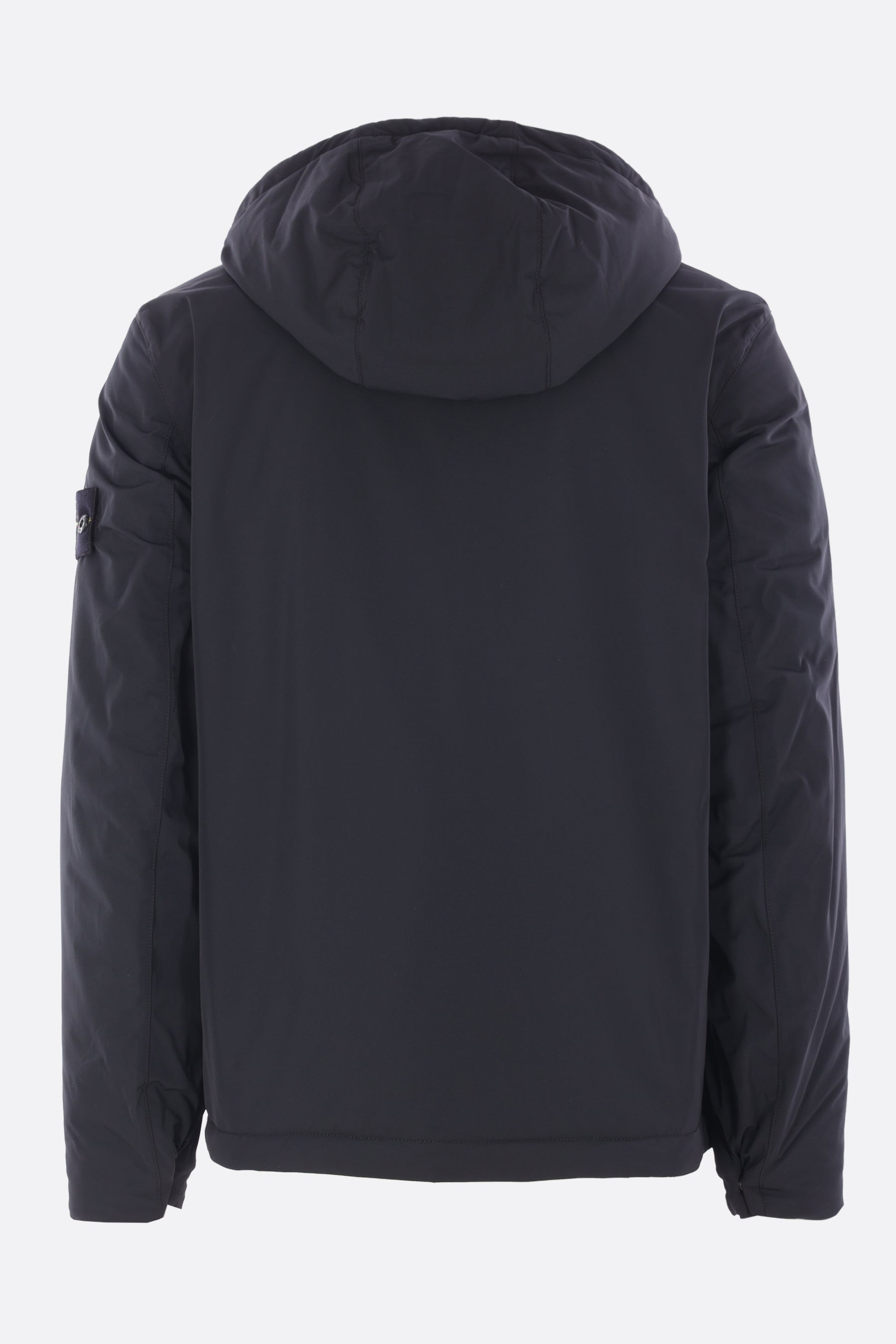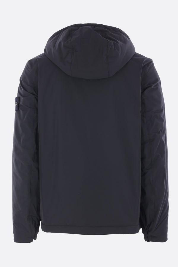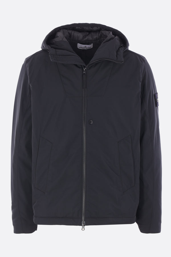 Stone Island jacket crafted from nylon micro twill with PrimaLoft® Gold P.U.R.E™ padding. Features a drawstring hood, double-slider front zip closure, welt pockets, long sleeves with adjustable cuffs, and a straight hem. The design is completed with the iconic logo badge.