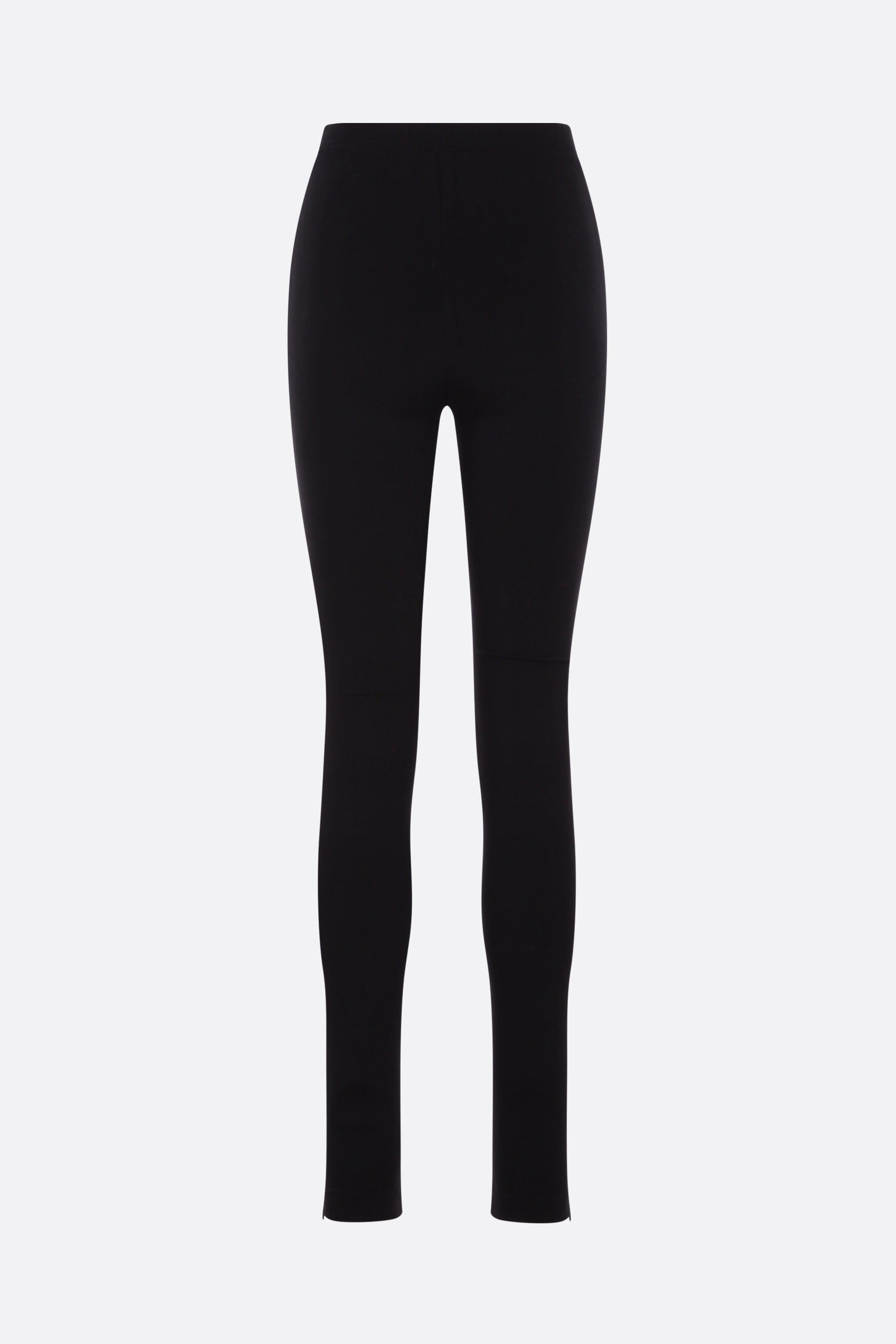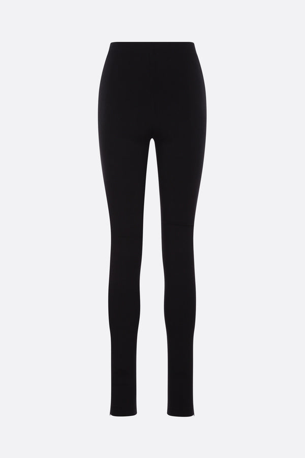 Toteme leggings crafted from black viscose blend. Featuring an elasticated waistband and zip details at the hem.