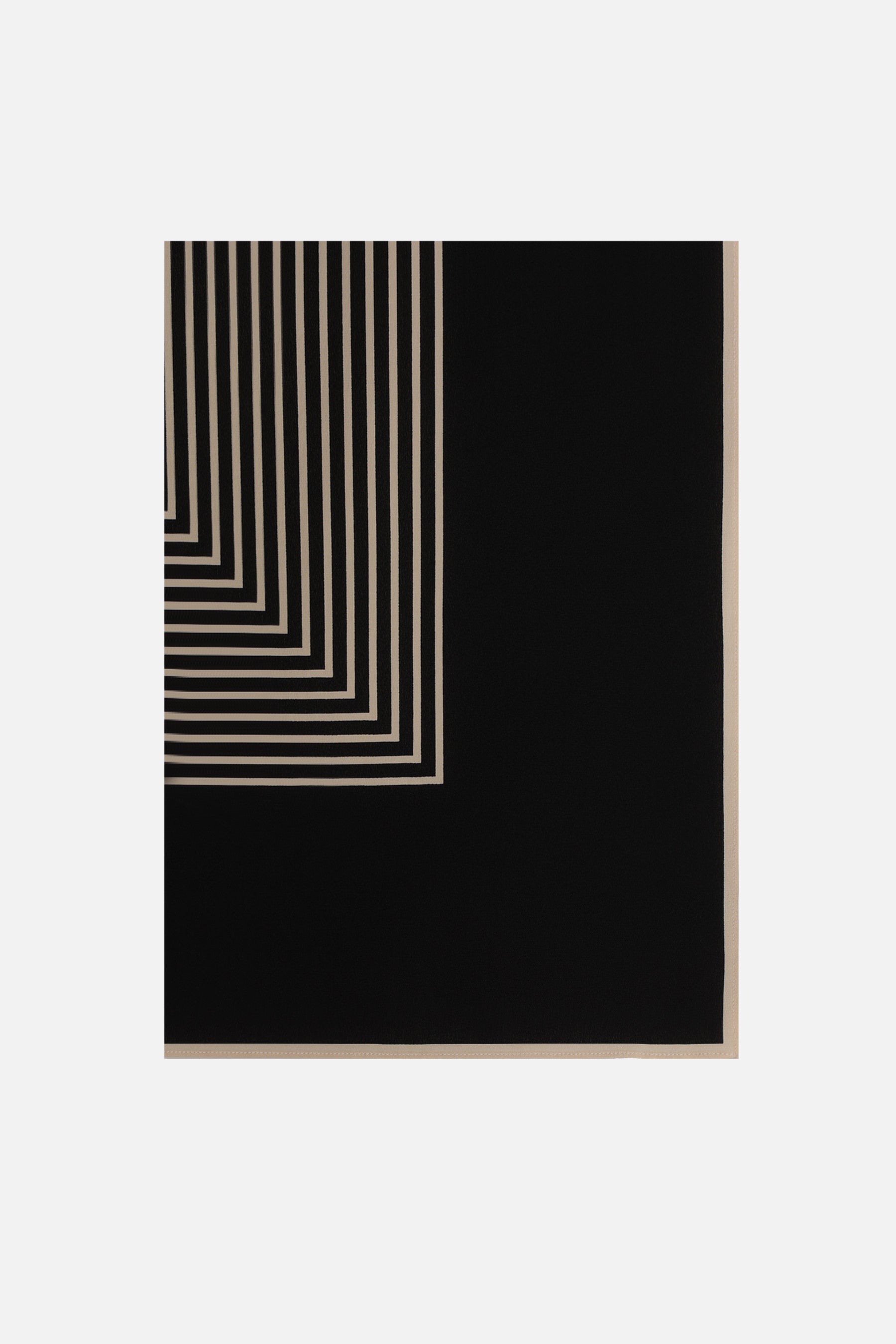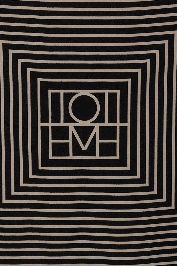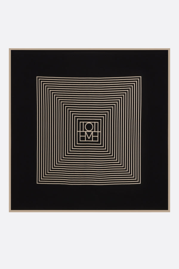Toteme foulard crafted in black crêpe de chine with contrasting striped monogram print at the centre.
