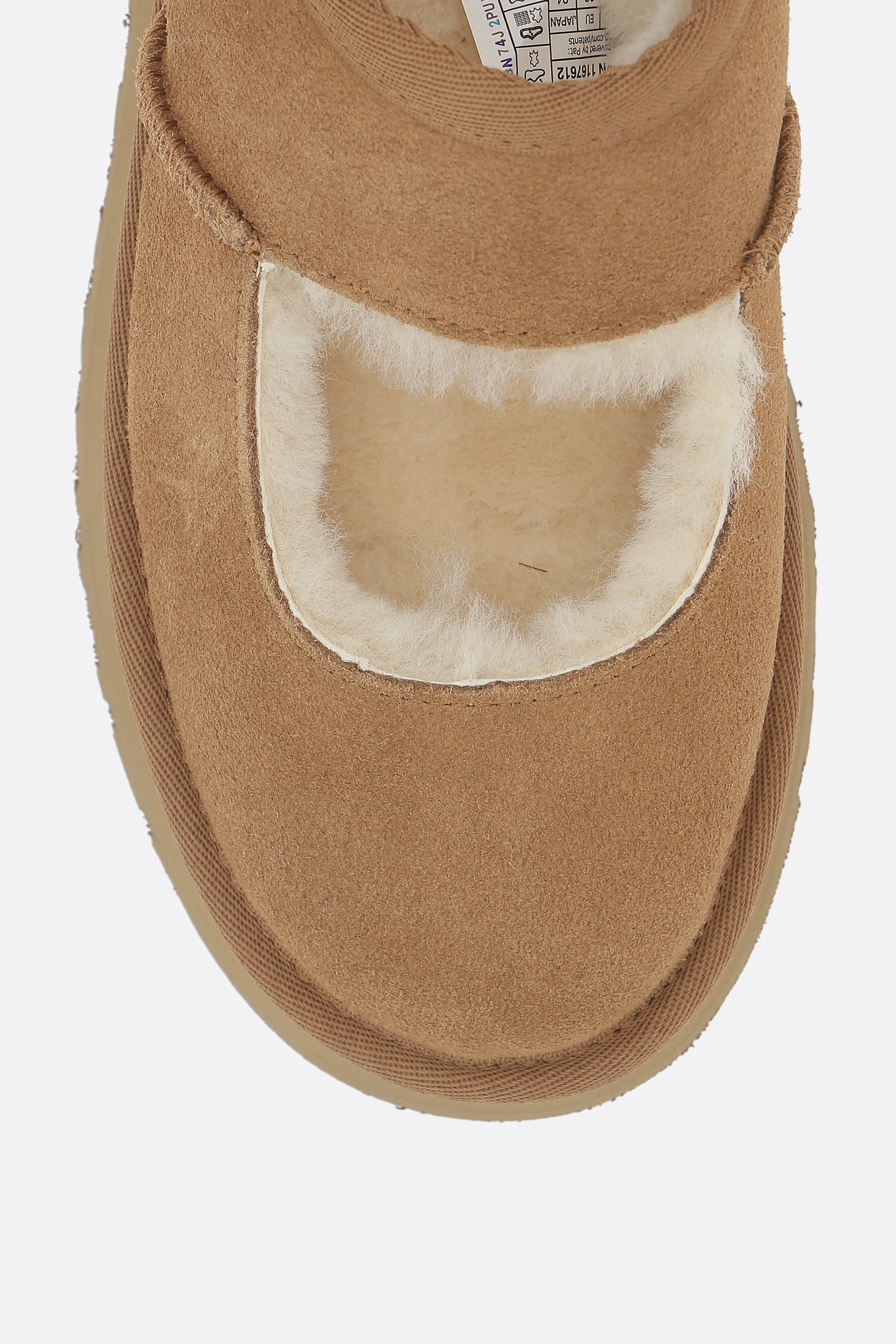 Ugg mary-jane slippers crafted in light brown suede with cut-out detail on the front. Featuring a round toe, UGGplush™ regenerated wool and lyocell lining, and a sugarcane EVA sole. The design is completed by the iconic logo embossed on the heel.
