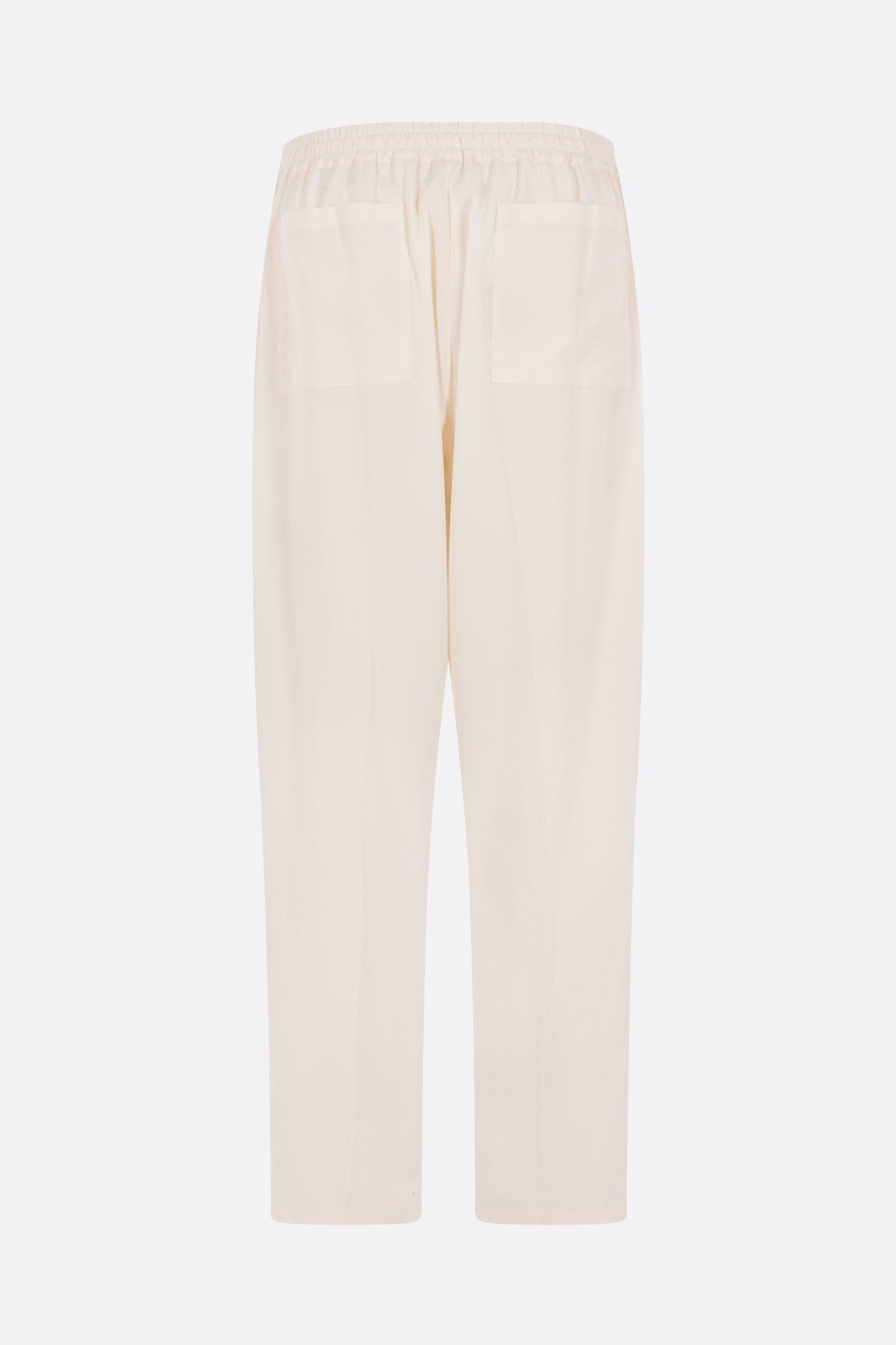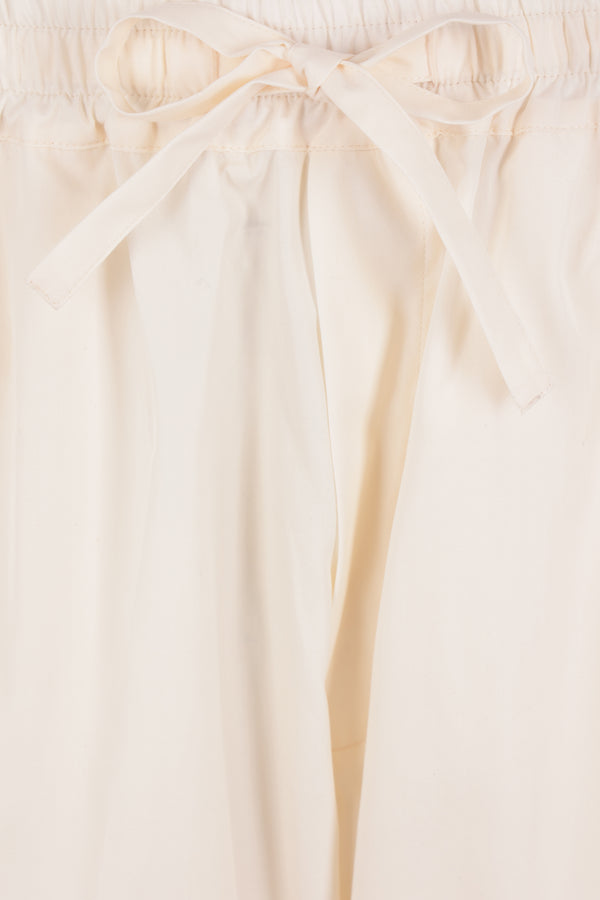Umit Benan pants made of cotton and silk in off-white. Featuring an elastic waistband with drawstring and pockets on both sides.