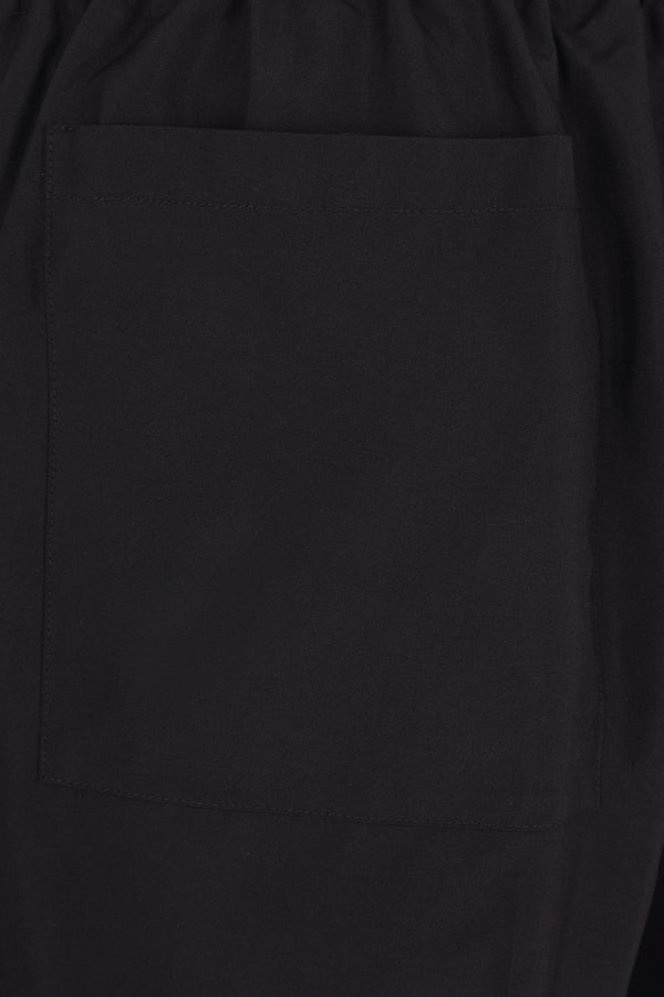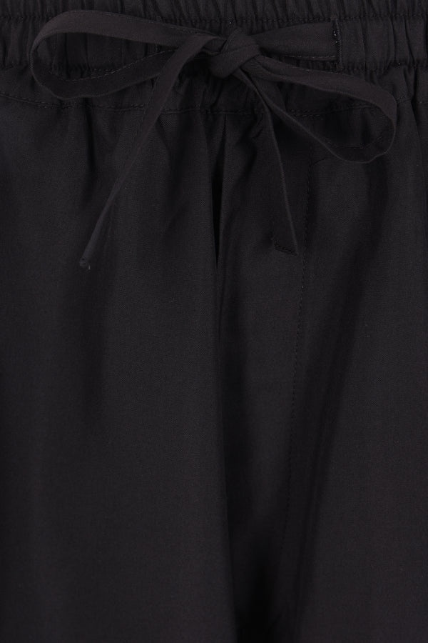 Umit Benan shorts made of black silk. Featuring an elastic waistband with drawstring and pockets on both sides.