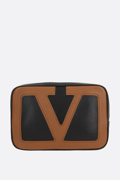 Valentino Garavani clutch made of black nappa leather with a contrasting maxi VLogo Signature. Featuring gold-tone hardware, zip closure, and a removable wrist strap. The black nappa-lined interior includes three card slots.