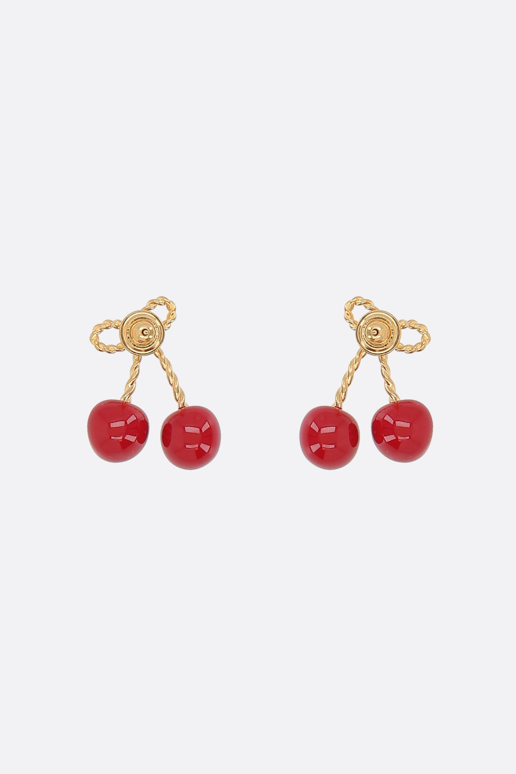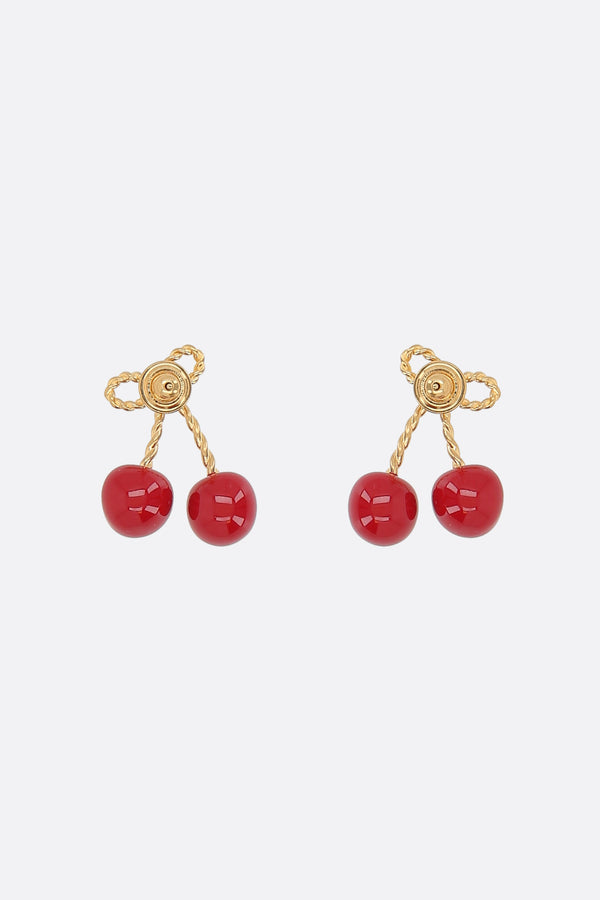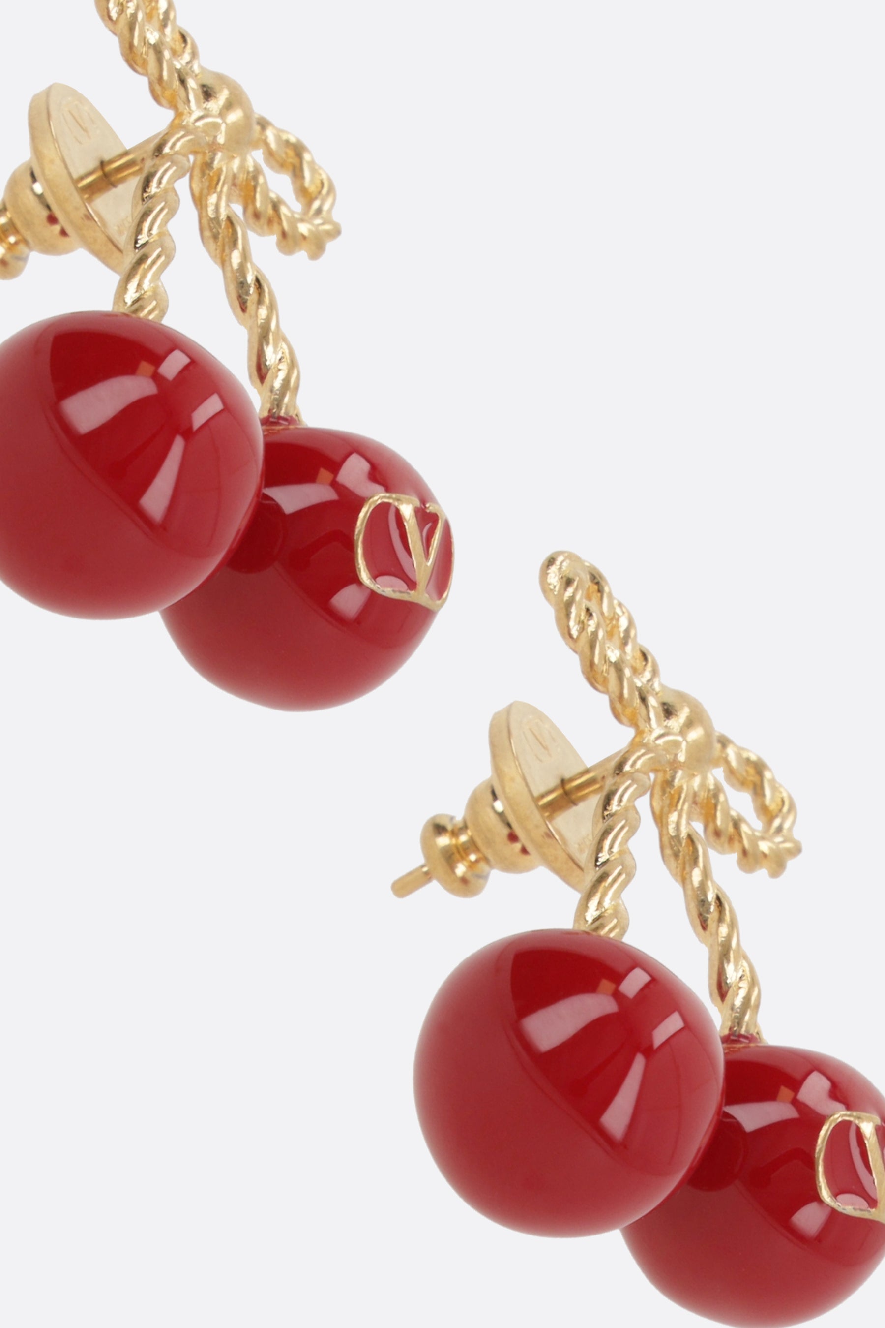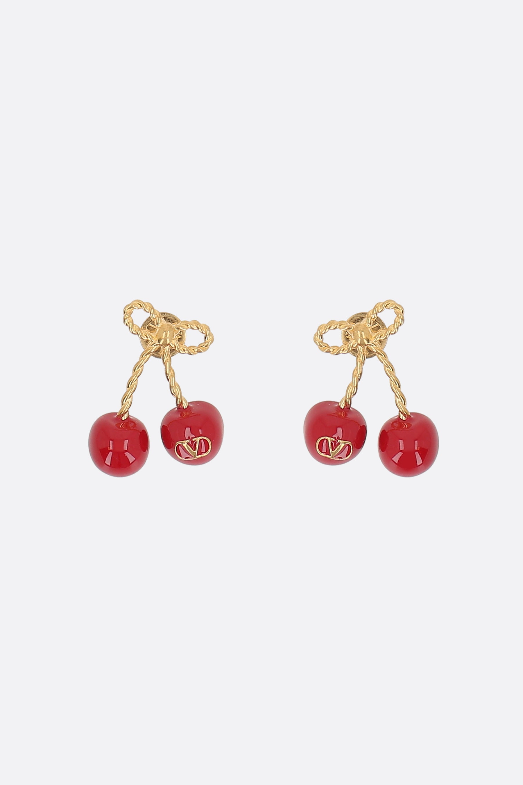 Valentino Garavani earrings crafted in antiqued brass-tone metal, featuring a cherry-shaped design in metal and enamel with the iconic VLogo Signature detail. Finished with a post-back fastening for pierced ears.