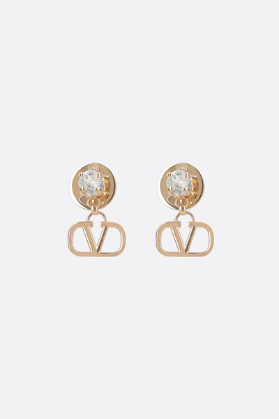 Valentino Garavani drop earrings crafted from gold-finish metal, adorned with clear Swarovski® crystals. Featuring butterfly backings for pierced ears.
