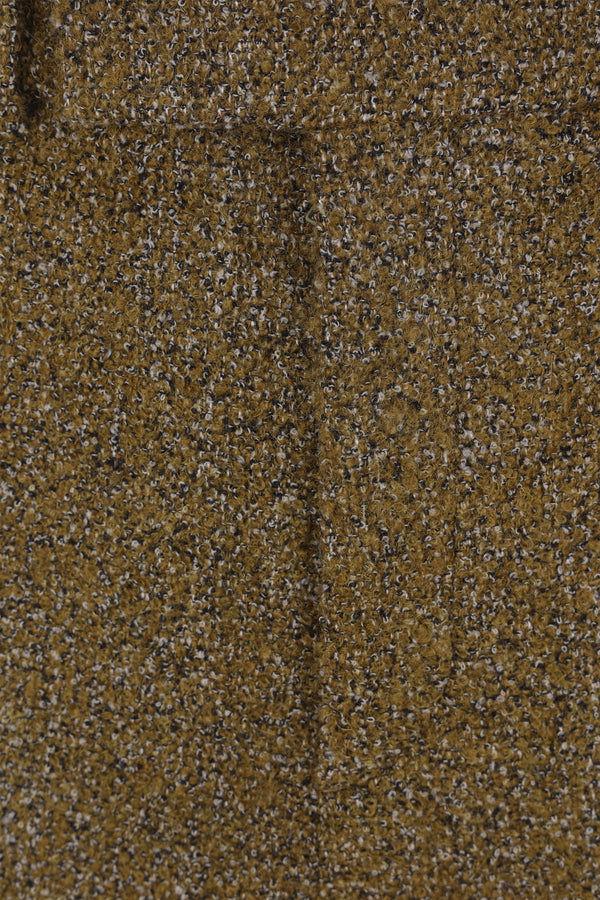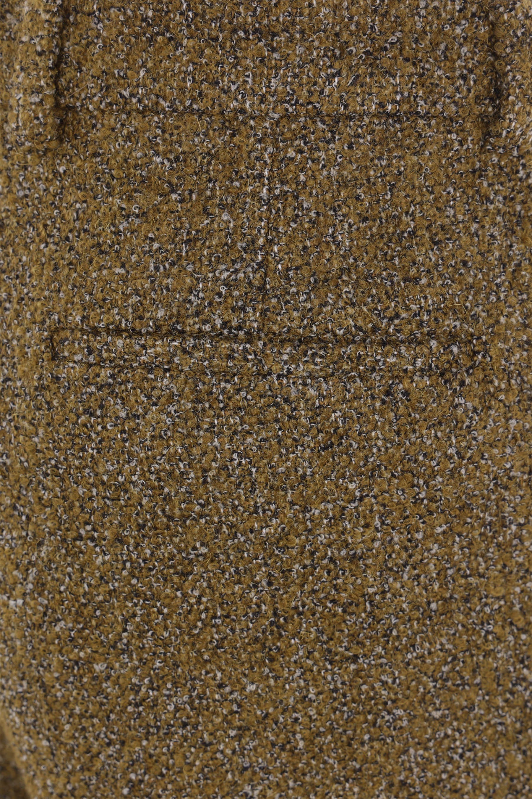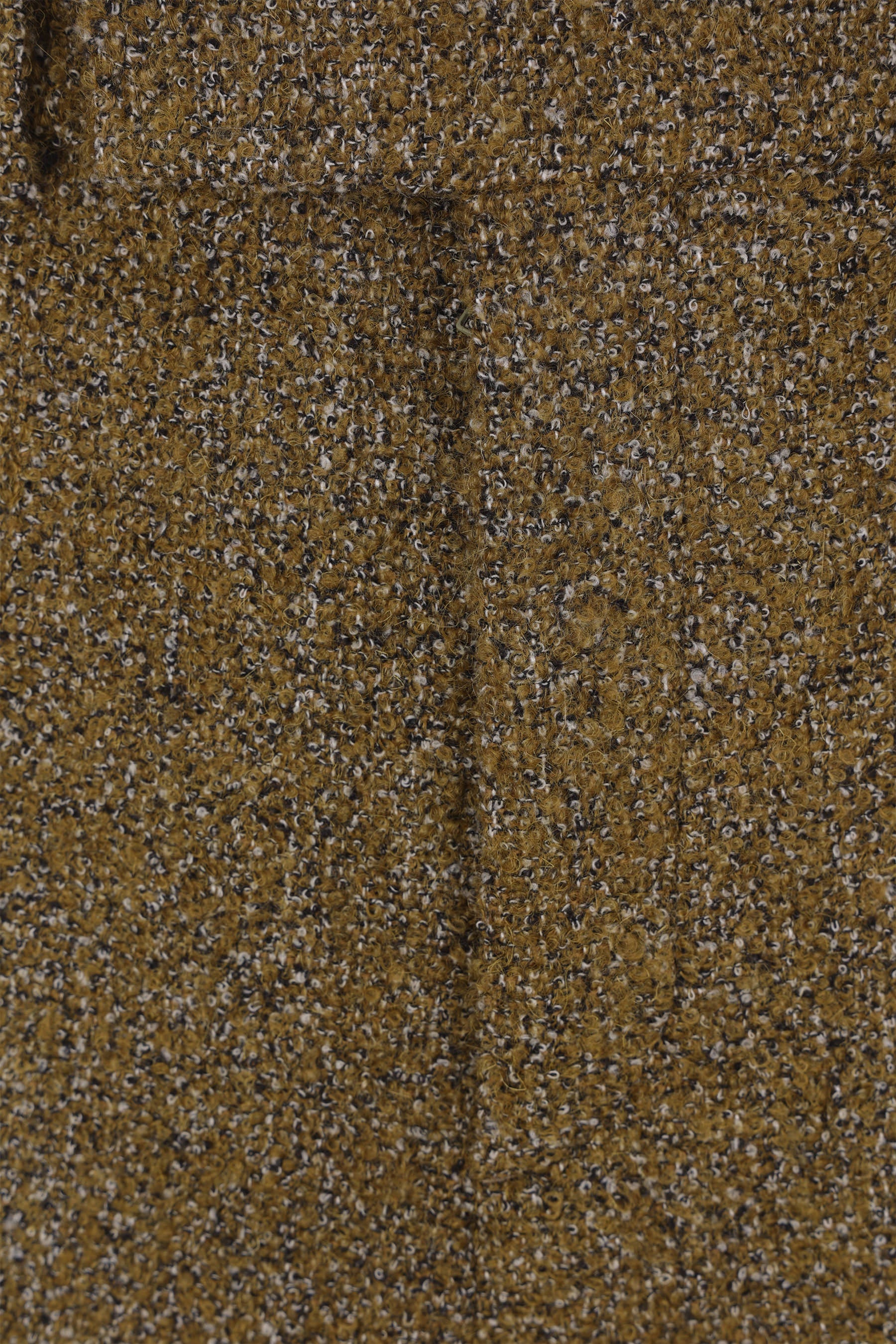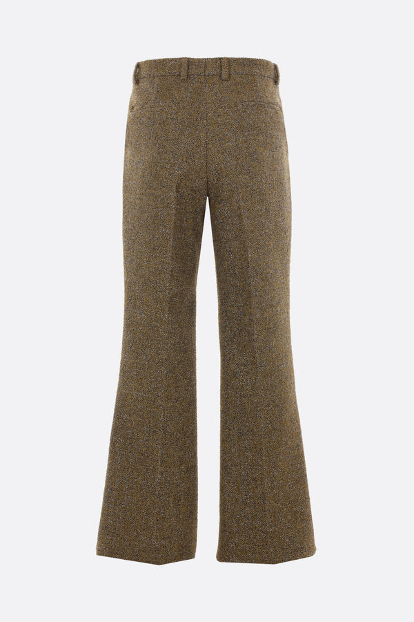 Valentino Garavani trousers crafted from green wool-blend bouclé. Featuring front hook, button, and zip closure, belt loops, multiple pockets, central crease, slightly flared hem, and lined interior.