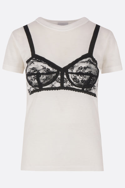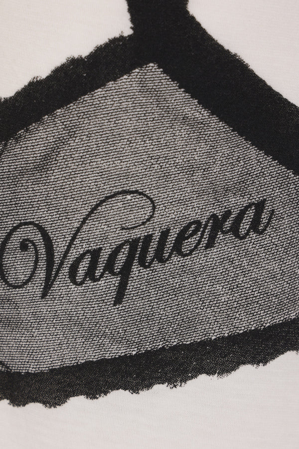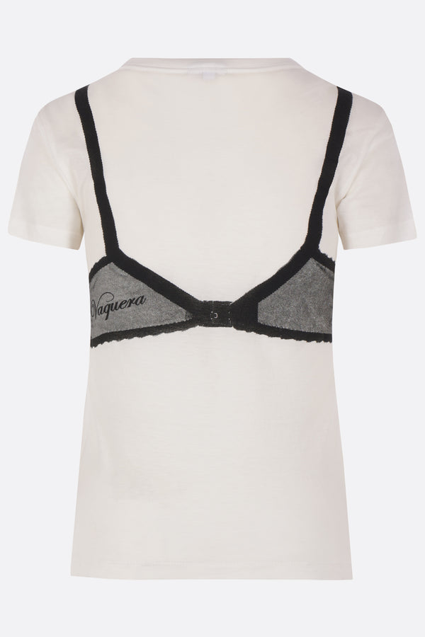 Vaquera t-shirt crafted from white cotton jersey with a bra trompe-l'œil print on both sides. Featuring a crew neckline, short sleeves, and a straight hem.