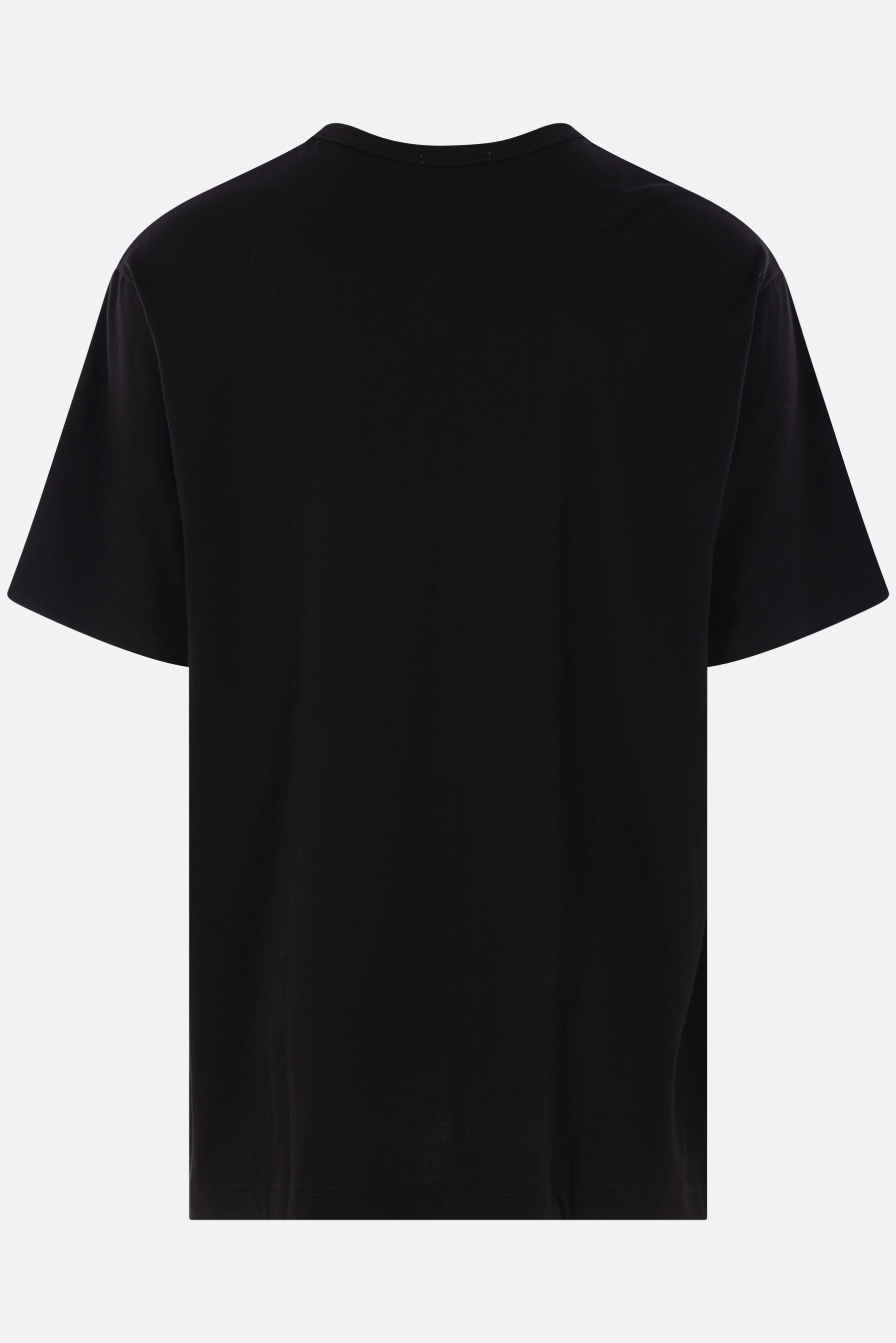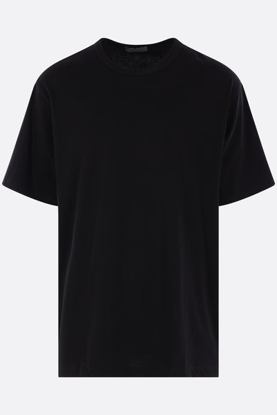 Yohji Yamamoto oversized t-shirt made from black cotton jersey. Features a crew neckline, short sleeves, and a straight hem.